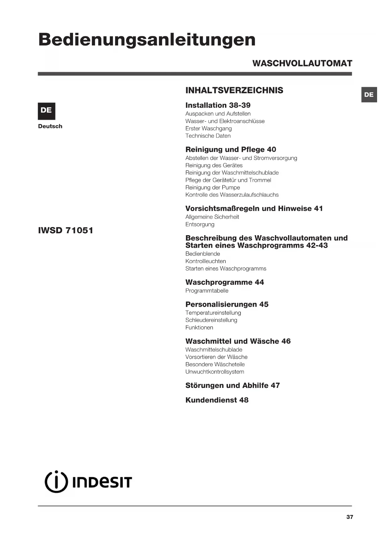 BEDIENUNGSANLEITUNG IWSD 71051 C ECO EU INDESIT