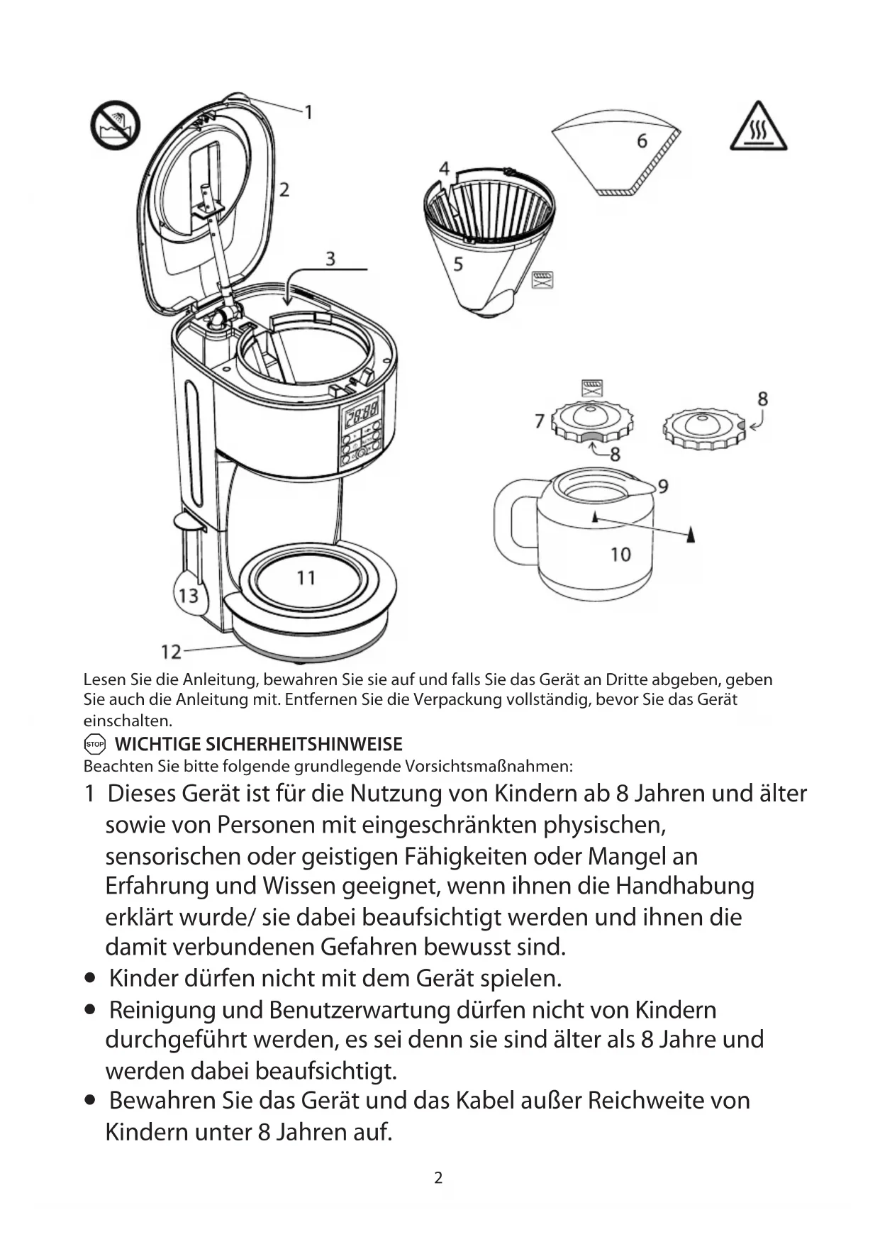 1 Dieses Gerät ist für die Nutzung von Kindern ab 8 Jahren und älter