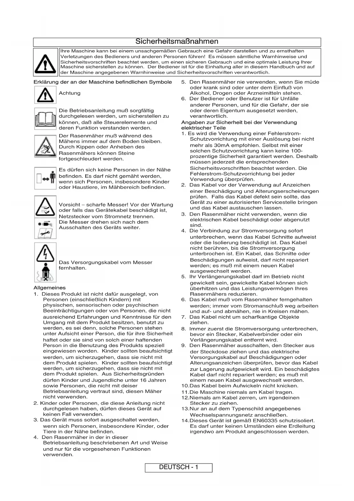 Verletzungen des Bedieners und anderen Personen führen! Es müssen sämtliche Warnhinweise und