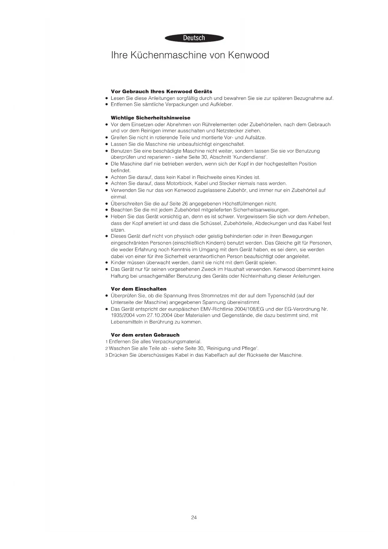 2223Vor Gebrauch Ihres Kenwood Geräts