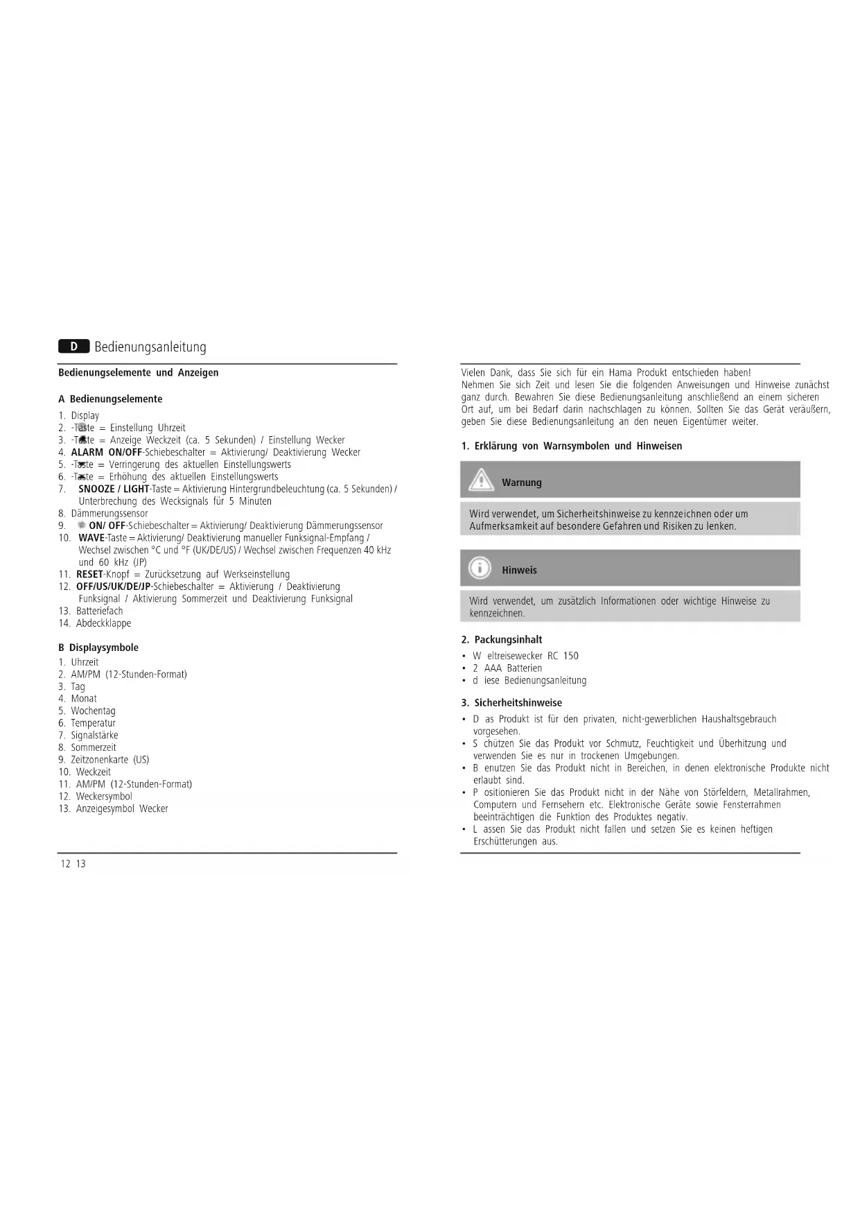 RC 150 - Radiowecker HAMA - Kostenlose Bedienungsanleitung