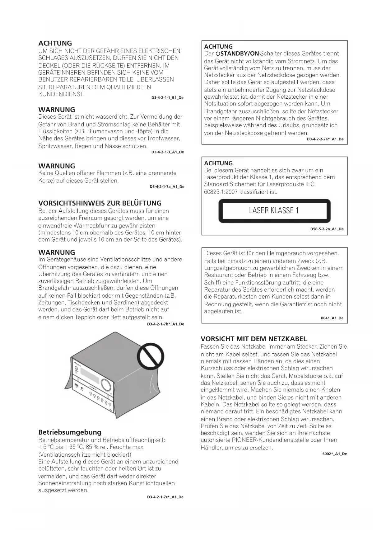 LASER KLASSE 1 D58-5-2-2a_A1_De Dieses Gerät ist für den Heimgebrauch vorgesehen.