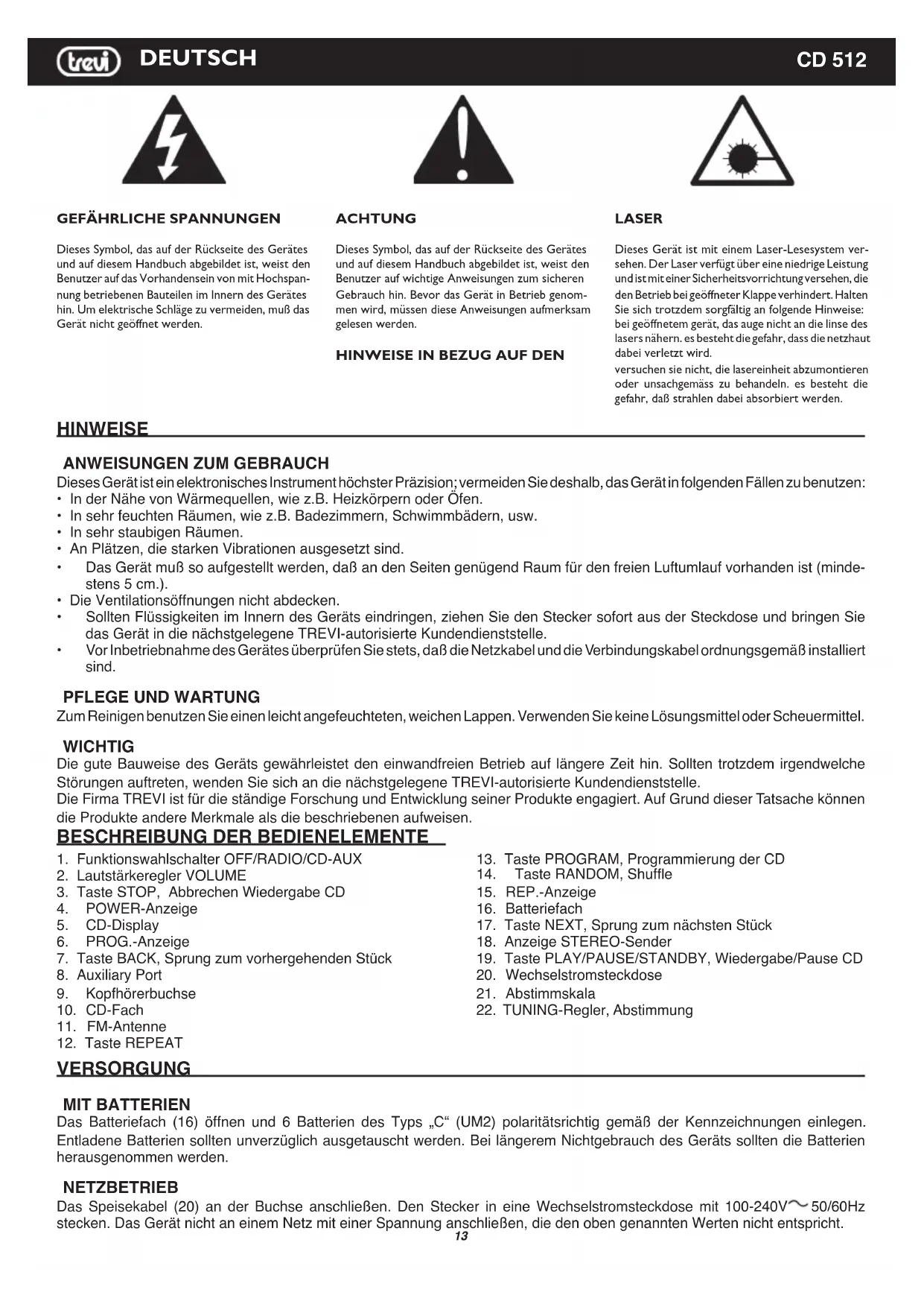 BEDIENUNGSANLEITUNG CD 512 Trevi