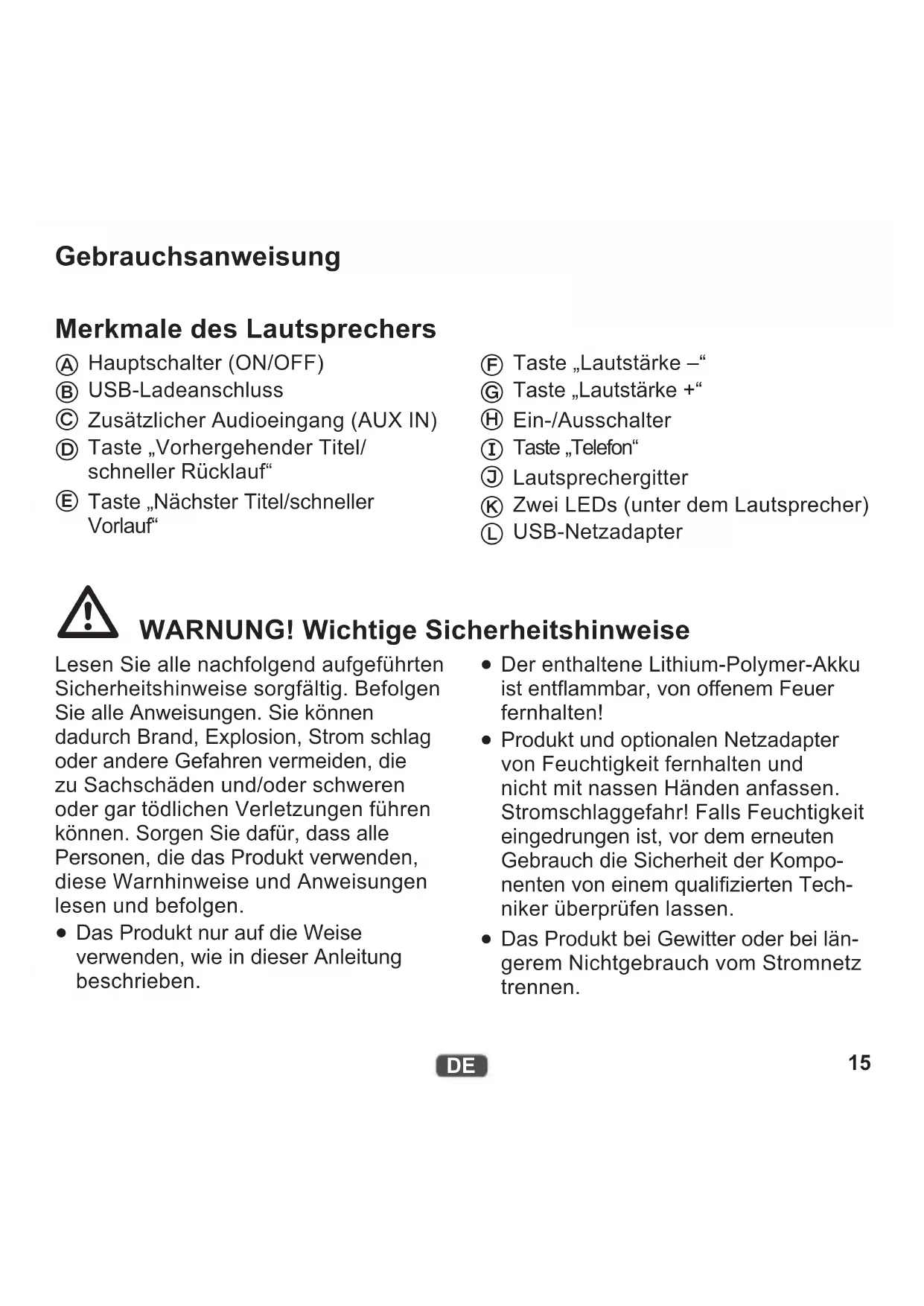 Gebrauchsanweisung Merkmale des Lautsprechers
