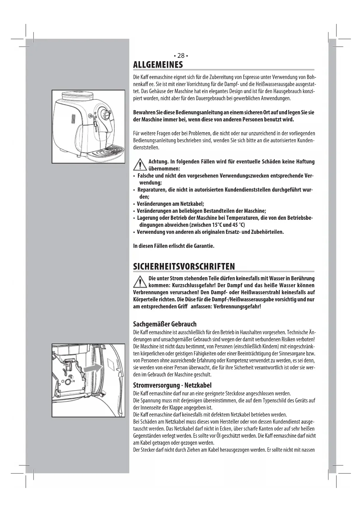Die Ka eemaschine darf keinesfalls mit defektem Netzkabel betrieben werden.