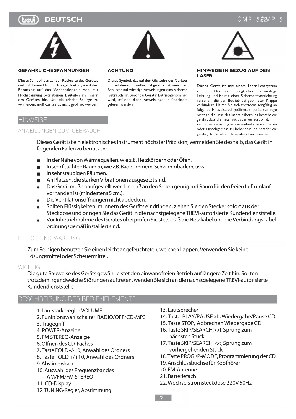 BEDIENUNGSANLEITUNG CMP 522 Trevi