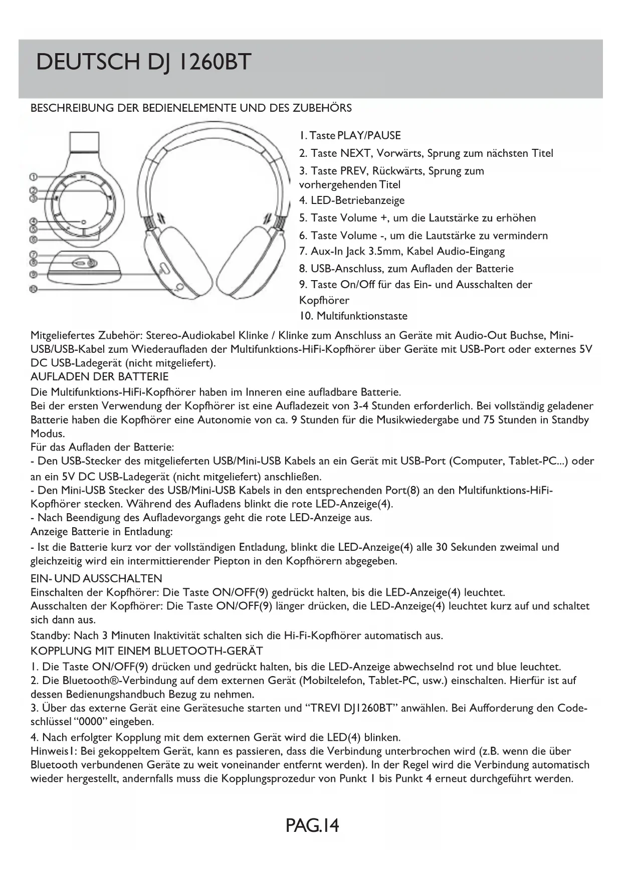 DJ 1260 BT - Kopfhörer Trevi - Kostenlose Bedienungsanleitung