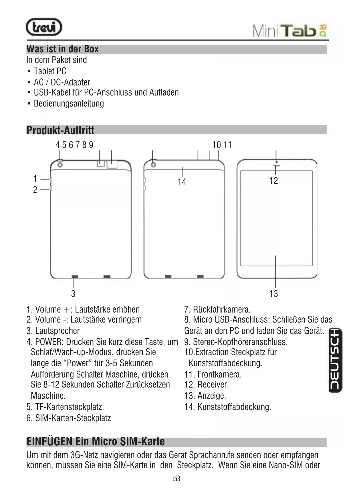 BEDIENUNGSANLEITUNG Mini Tab Q Trevi