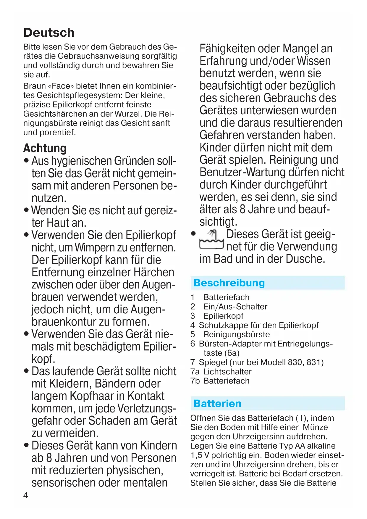 SE820 Face - Epilierer BRAUN - Kostenlose Bedienungsanleitung