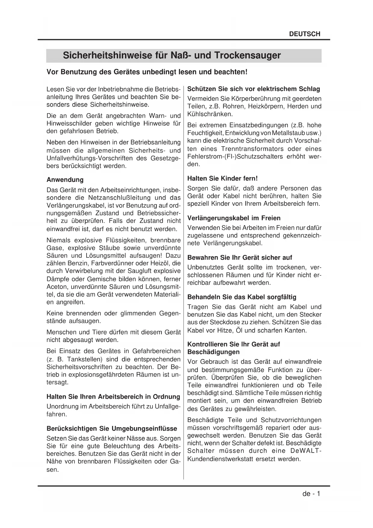 DW793 - Staubsauger DEWALT - Kostenlose Bedienungsanleitung
