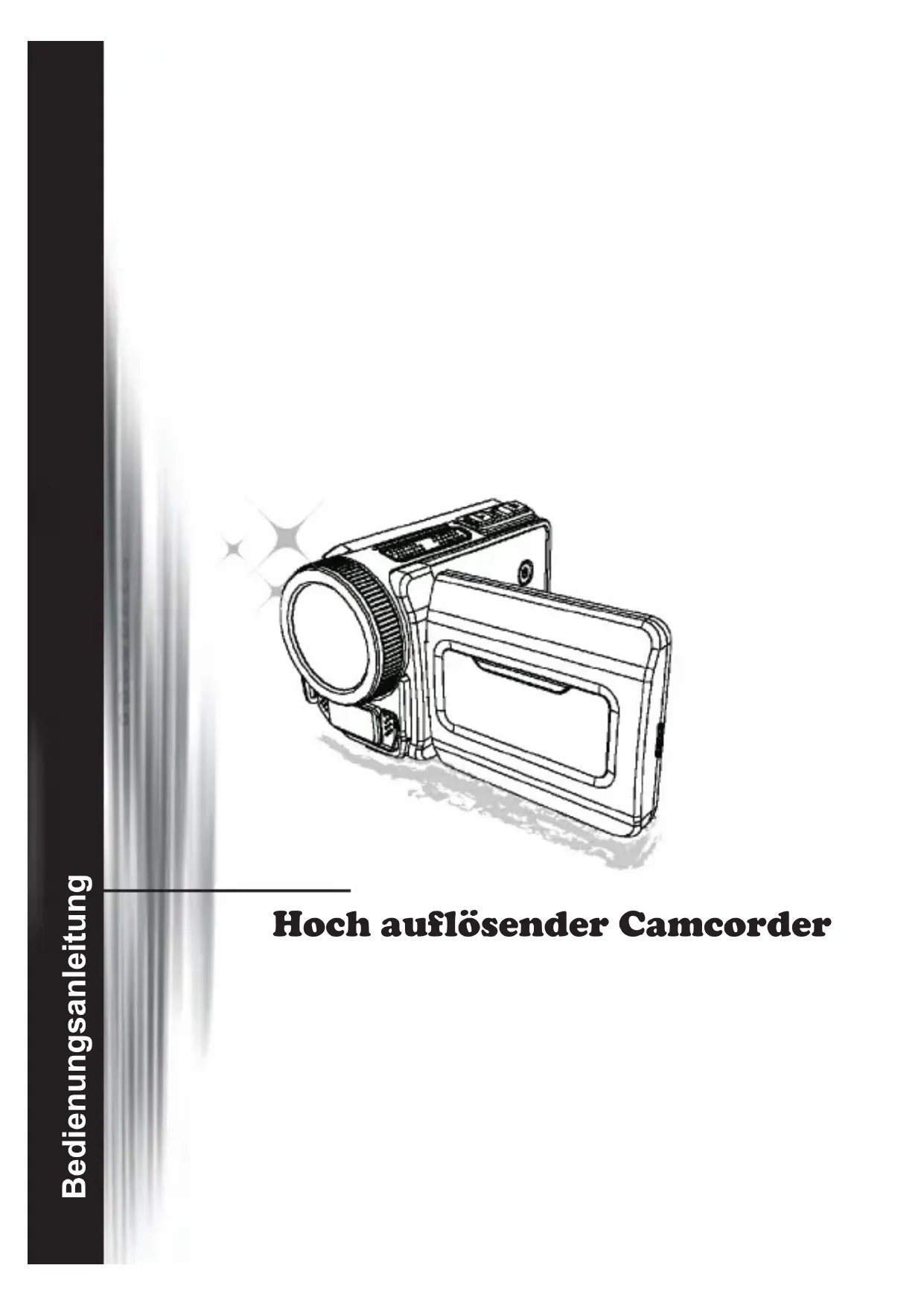 - 15 Fehlerbehebung Bei der Verwendung des Camcorders: Problem Ursache Lösungsmöglichkeit Der Camcorder kann nicht eingeschaltet werden. Die Batterie ist leer. Tauschen Sie die Batterie aus. Die Batterie ist falsch herum eingelegt. Legen Sie die Batterie neu ein. Beim Drücken des Auslösers oder der Aufnahmetaste werden keine Fotos und Videoclips aufgenommen. Der Speicher ist voll. Machen Sie Platz auf der SD/ MMC-Karte oder im internen Speicher frei. Der Camcorder lädt gerade den Blitz auf. Warten Sie, bis der Blitz vollständig geladen ist. Die SD-Karte ist “geschützt”. Entfernen Sie den Schreibschutz der SD-Karte. Auf dem LCD-Bildschirm erscheinen die Fehlermeldungen “MEMORY ERROR” (Speicherfehler) oder “CARD ERROR” (Kartenfehler). Oder der Camcorder kann die Speicherkarte nicht lesen. Das Format der Speicherkarte ist nicht kompatibel mit dem Camcorder. Formatieren Sie die Speicherkarte mit der Funktion “Format” (Formatieren). Die Speicherkarte ist beschädigt. Setzen Sie eine andere Speicherkarte ein. Die Bilder und Videoclips, die sich auf der Speicherkarte benden, sind nicht aufndbar. Die Aufnahmen benden sich im internen Speicher. Das passiert, wenn Sie nach der Aufnahme einiger Fotos oder Videoclips eine Speicherkarte einsetzen. Nachdem Sie die Speicherkarte herausgenommen haben, haben Sie wieder Zugriff auf diese Dateien.16 Bei der Verwendung des Camcorders: Problem Ursache Lösungsmöglichkeit Der Blitz kann nicht verwendet werden. Wenn die Batterie zu schwach ist, kann der Blitz aufgrund zu geringer Spannung deaktiviert sein. Tauschen Sie die Batterie aus. Der Camcorder reagiert während des Betriebs auf keinen Tastendruck. Der Camcorder hat ein Softwareproblem. Nehmen Sie die Batterie heraus, und setzen Sie sie wieder ein. Schalten Sie den Camcorder wieder ein. Die aufgenommenen Fotos sind verschwommen. Die Bildschärfe ist nicht richtig eingestellt. Wählen Sie eine geeignete Fokuseinstellung. Die aufgenommenen Fotos oder Videoclips sind zu dunkel. Das Umgebungslicht ist für die Aufnahme nicht ausreichend. Verwenden Sie zum Fotograeren den Blitz. Verwenden Sie für die Aufnahme von Videoclips zusätzliche Lichtquellen. Bei der Wiedergabe von Bildern auf dem LCD- Bildschirm oder auf dem Computer erscheinen Störungen. Die Flimmereinstellung entspricht nicht dem Standard des Lands, in dem Sie sich benden. Ändern Sie die Flimmereinstellung. Weitere Informationen dazu nden Sie in der Tabelle “Einstellung der Flimmerfrequenz”. Ich möchte die Seriennummer der Dateinamen von vorn beginnen (IMG_xxxx). Die Vergabe der Seriennummer erfolgt durch die Camcorder-Firmware. Formatieren Sie die Speicherkarte mit der Funktion “Format” (Formatieren). Ich habe eine Mediendatei konvertiert und IMG_xxxx.* benannt (xxxx steht für die Zahl). Dann habe ich die Datei auf den Camcorder kopiert, nde sie aber dort nicht mehr. Es gibt eine andere Datei mit derselben Seriennummer (z. B. IMG_0001, MP4 und IMG_0001, JPG), oder der Dateityp wird nicht unterstützt. Geben Sie der Datei eine noch nicht vorhandene Seriennummer, und stellen Sie sicher, dass der Dateityp vom Camcorder unterstützt wird.17 Beim Anschließen des Camcorders an einen Computer oder Fernsehgerät: Problem Ursache Lösungsmöglichkeit Ich kann keine Videoclips auf dem Computer abspielen. Auf dem Computer ist der Treiber oder die erforderliche Software nicht installiert. Installieren Sie Direct X 9.0c oder eine höhere Version und Windows Media 9.0 Codecs, um dieses Problem zu lösen. Installieren Sie die Software und den Treiber von der mitgelieferten CD, oder laden Sie sich die erforderlichen Dateien auf der Website http://www.microsoft.com herunter. Lesen Sie nach unter “Kopieren von Dateien auf den Computer”. Die Treiberinstallation ist fehlgeschlagen. Die Installation wurde abgebrochen. Entfernen Sie den Treiber und andere damit zusammenhängende Programme. Installieren Sie den Treiber entsprechend den beschriebenen Installationsschritten neu. Der Camcorder wurde mit dem USB-Kabel an den Computer angeschlossen, bevor der Treiber installiert wurde. Installieren Sie den Treiber, bevor Sie das USB-Kabel anschließen. Auf dem Fernsehbildschirm erscheint nichts, nachdem der Camcorder an das Fernsehgerät angeschlossen wurde. Der Camcorder wurde nicht richtig an das Fernsehgerät angeschlossen. Schließen Sie den Camcorder erneut an das Fernsehgerät an, achten Sie dabei auf die richtigen Anschlüsse. Es ist ein Konikt mit einem anderen angeschlossenen Camcorder oder Aufnahmegerät aufgetreten. Das Gerät ist nicht kompatibel mit dem Camcorder. Wenn Sie noch andere Camcorder oder Aufnahmegeräte an den Computer angeschlossen haben, entfernen Sie diese und die dazugehörigen Treiber vollständig vom Computer, um den Konikt zu vermeiden. Bei der Videokonferenzfunktion erscheinen Störungen auf dem Computerbildschirm. Die Flimmereinstellung entspricht nicht dem Standard des Lands, in dem Sie sich benden. Ändern Sie die Flimmereinstellung. Weitere Informationen dazu nden Sie in der Tabelle “Einstellung der Flimmerfrequenz”. Der Inhalt dieses Benutzerhandbuchs kann jederzeit ohne Ankündigung geändert werden.Caméscope Haute Définition Manuel de l'utilisateurLe moment venu, pour mettre au rebut votre produit, veuillez recycler tous les composants possibles. Les batteries et les accumulateurs ne doivent pas être éliminés avec vos déchets ménagers ! Veuillez les- recycler à votre point de collecte local. Ensemble nous pouvons aider à protéger l’environnement. Bienvenue Nous sommes honorés que vous ayez choisi notre produit. Avant utilisation, veuillez lire soigneusement les déclarations suivantes. FCC Compliance Statement This device complies with Part 15 of the FCC Rules. Operation is subjected to the following two conditions: (1) this device may not cause harmful interference, and (2) this device must accept any interference received, including interference that may cause undesired opera