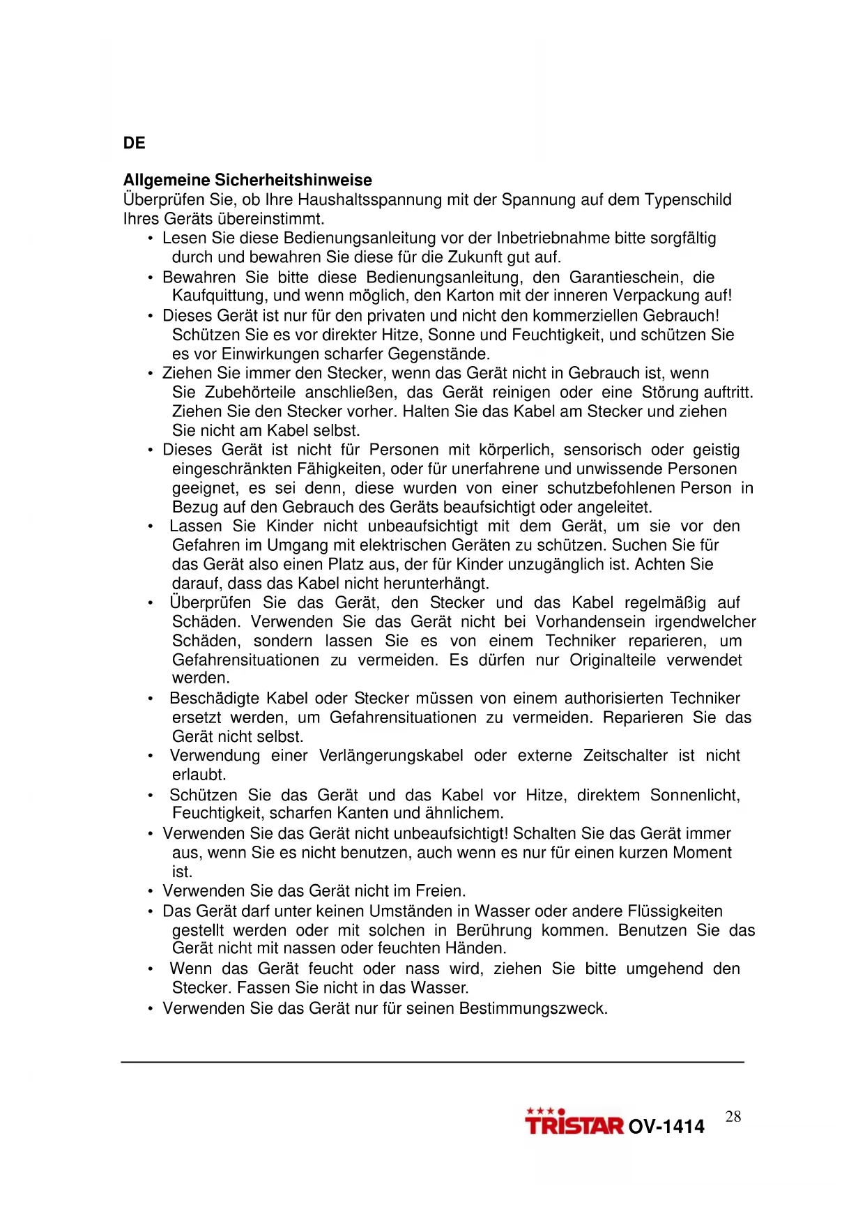 BEDIENUNGSANLEITUNG OV1414 TRISTAR
