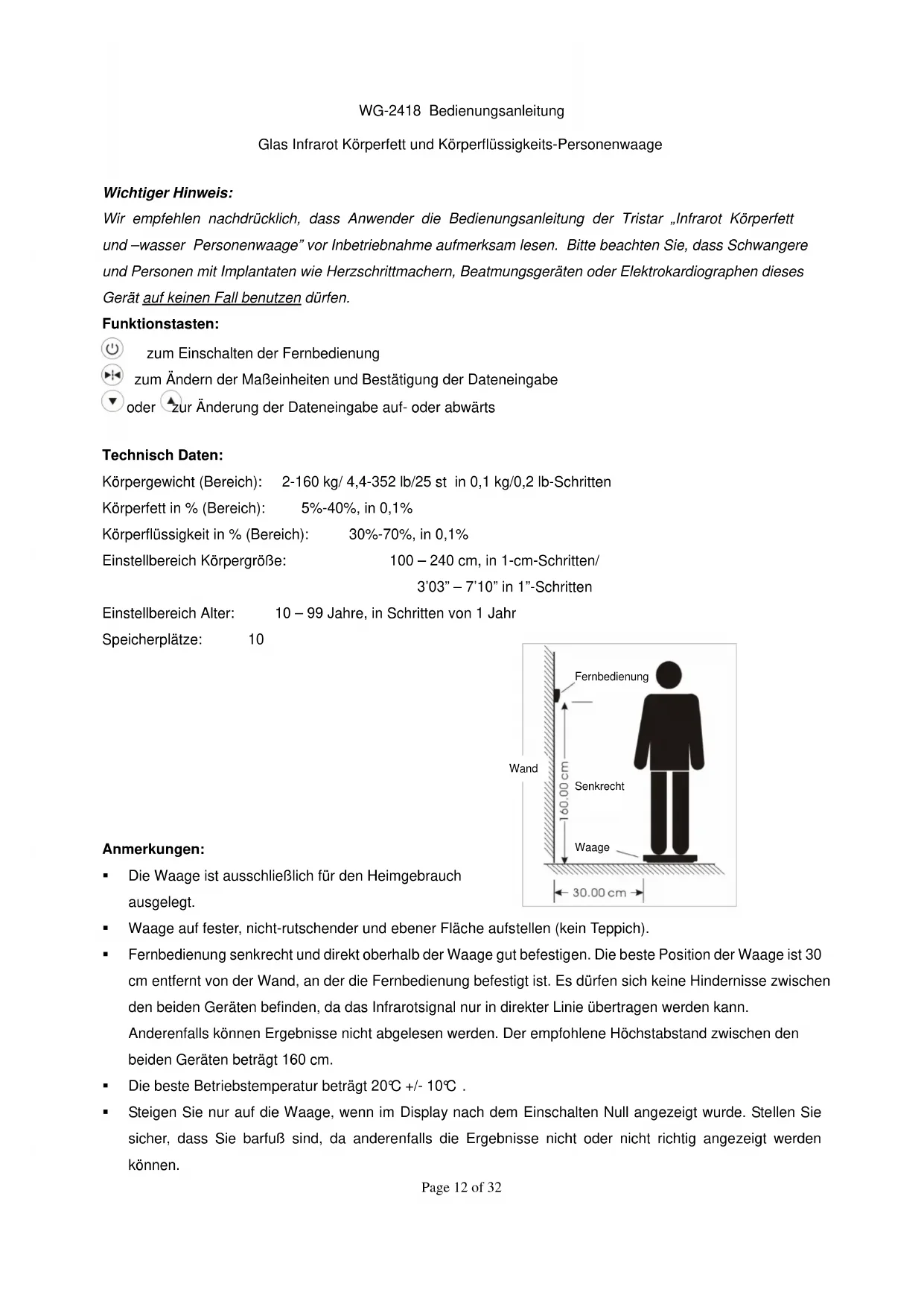und –wasser Personenwaage” vor Inbetriebnahme aufmerksam lesen. Bitte beachten Sie, dass Schwangere