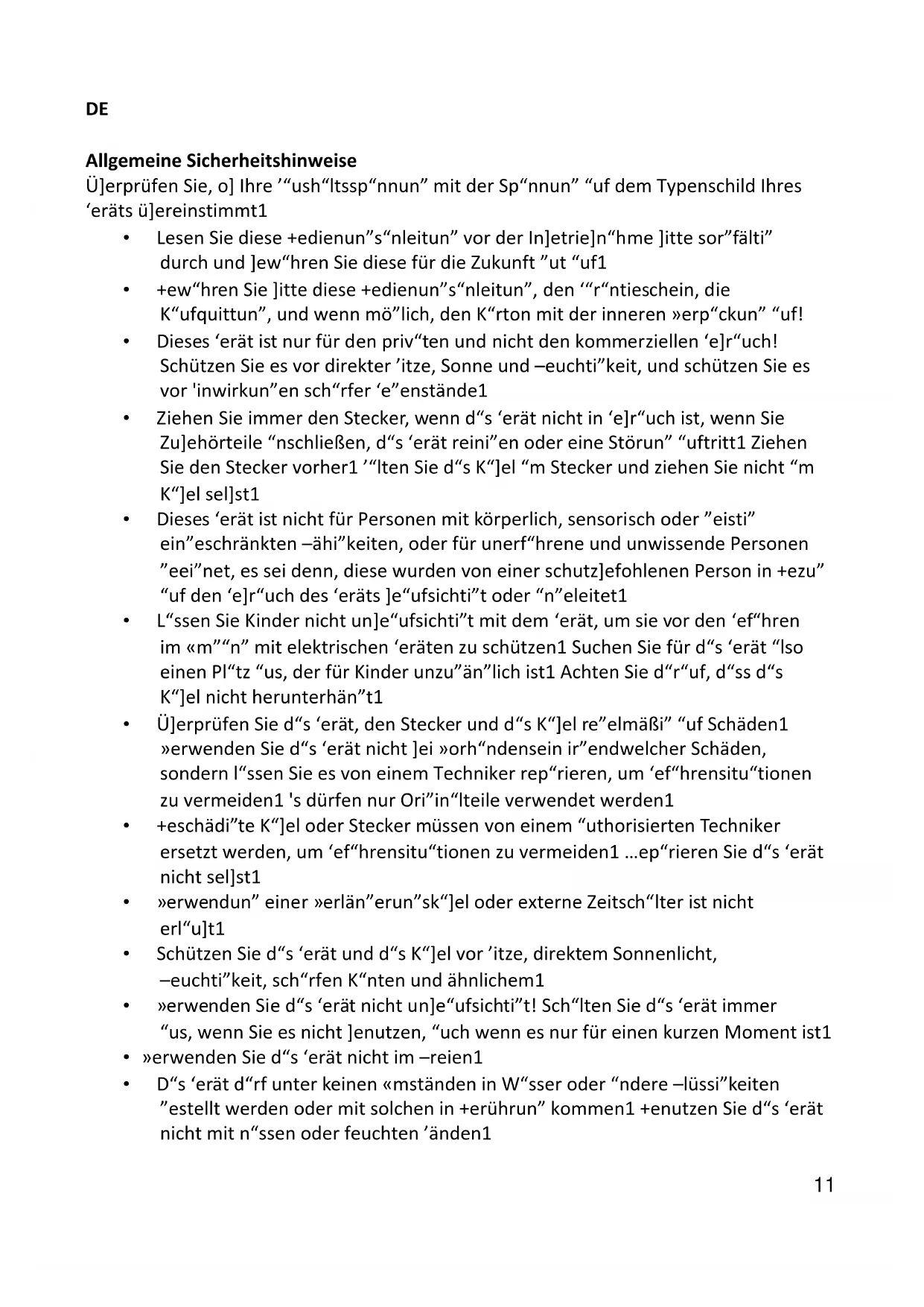 - Dieses Gerät ist nicht für Personen mit körperlich, sensorisch oder geistig eingeschränkten Fähigkeiten, oder für unerfahrene und unwissende Personen geeignet, es sei denn, diese wurden von einer schutzbefohlenen Person in Bezug auf den Gebrauch des Geräts beaufsichtigt oder angeleitet.