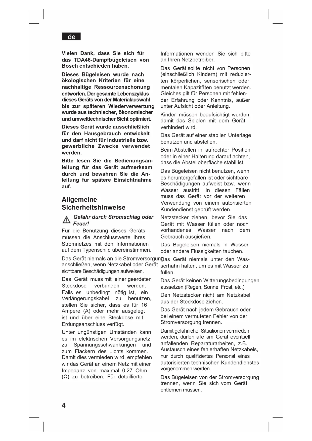 Laden Sie die Anleitung für Ihr Bügeleisen kostenlos im PDF-Format! Finden Sie Ihr Handbuch TDA4630 sensixx B3 secure Steam - BOSCH und nehmen Sie Ihr elektronisches Gerät wieder in die Hand. Auf dieser Seite sind alle Dokumente veröffentlicht, die für die Verwendung Ihres Geräts notwendig sind. TDA4630 sensixx B3 secure Steam von der Marke BOSCH.