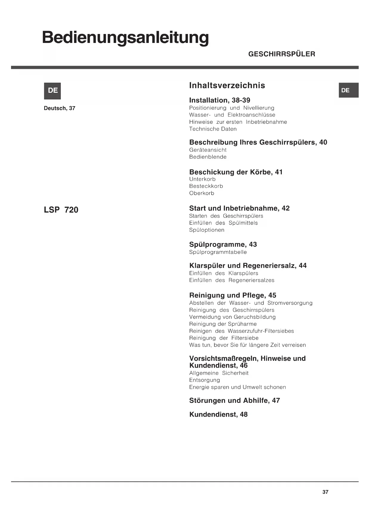 Beschreibung Ihres Geschirrspülers, 40