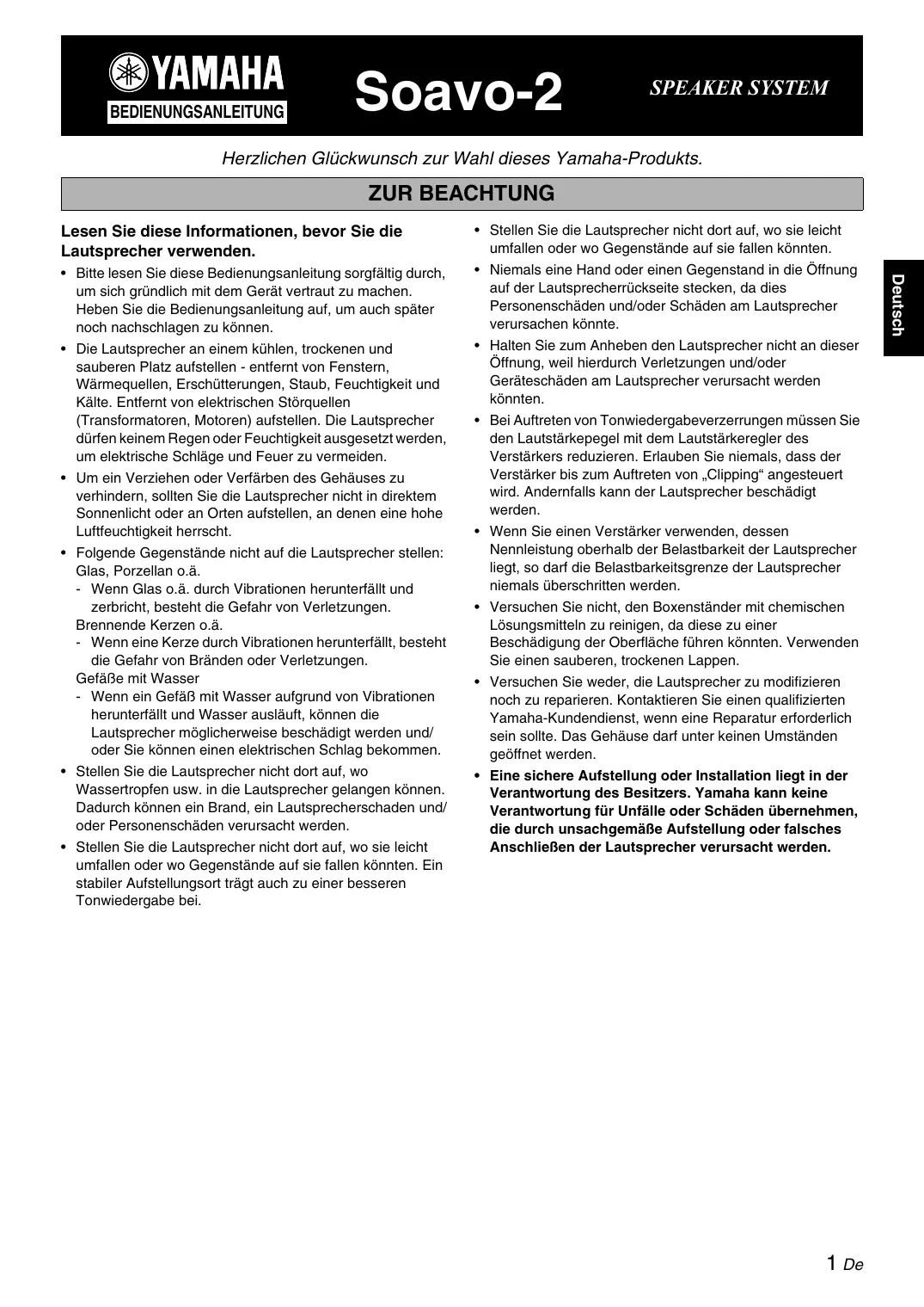BEDIENUNGSANLEITUNG SOAVO-2 YAMAHA