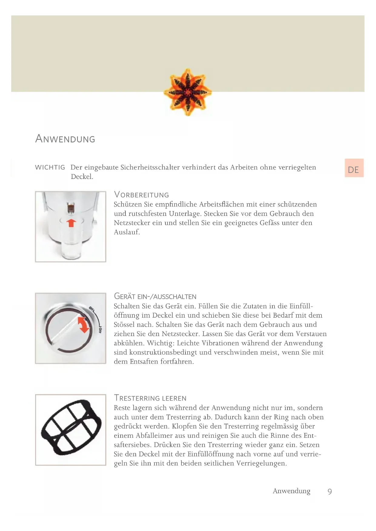 BEDIENUNGSCANLEITUNG ENTSAFTER