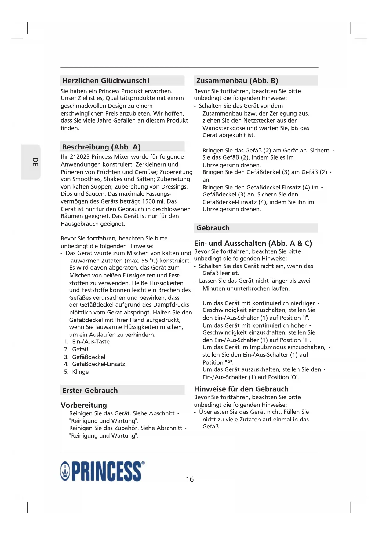 BEDIENUNGSANLEITUNG Power Blender PRINCESS