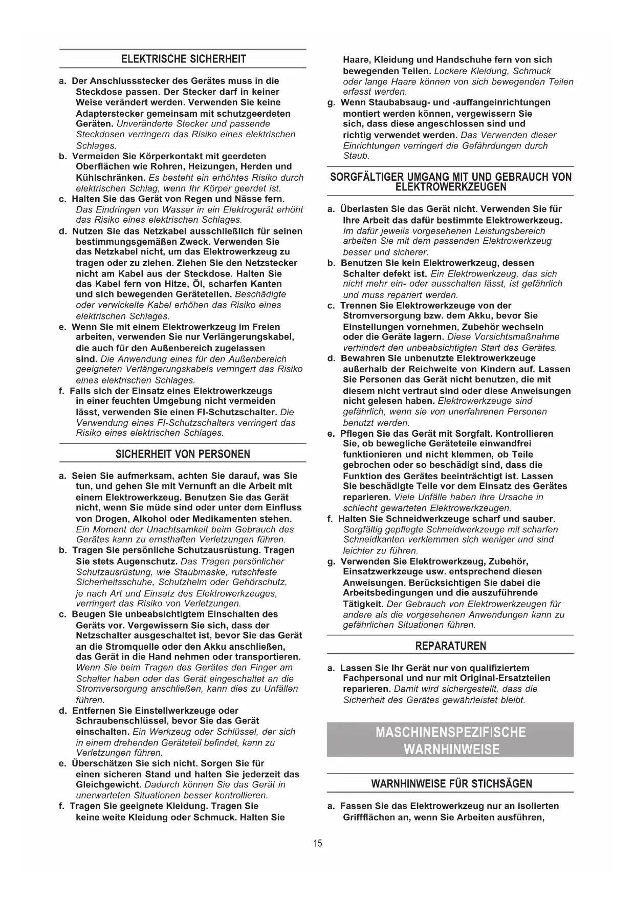 ELEKTROWERKZEUGE, ZUBEHÖR UND VERPACKUNGSMATERIAL NICHT MIT DEM HAUSMÜLL ENTSORGEN ALLGEMEINE SICHERHEITSHINWEISE FÜR ELEKTROWERKZEUGE