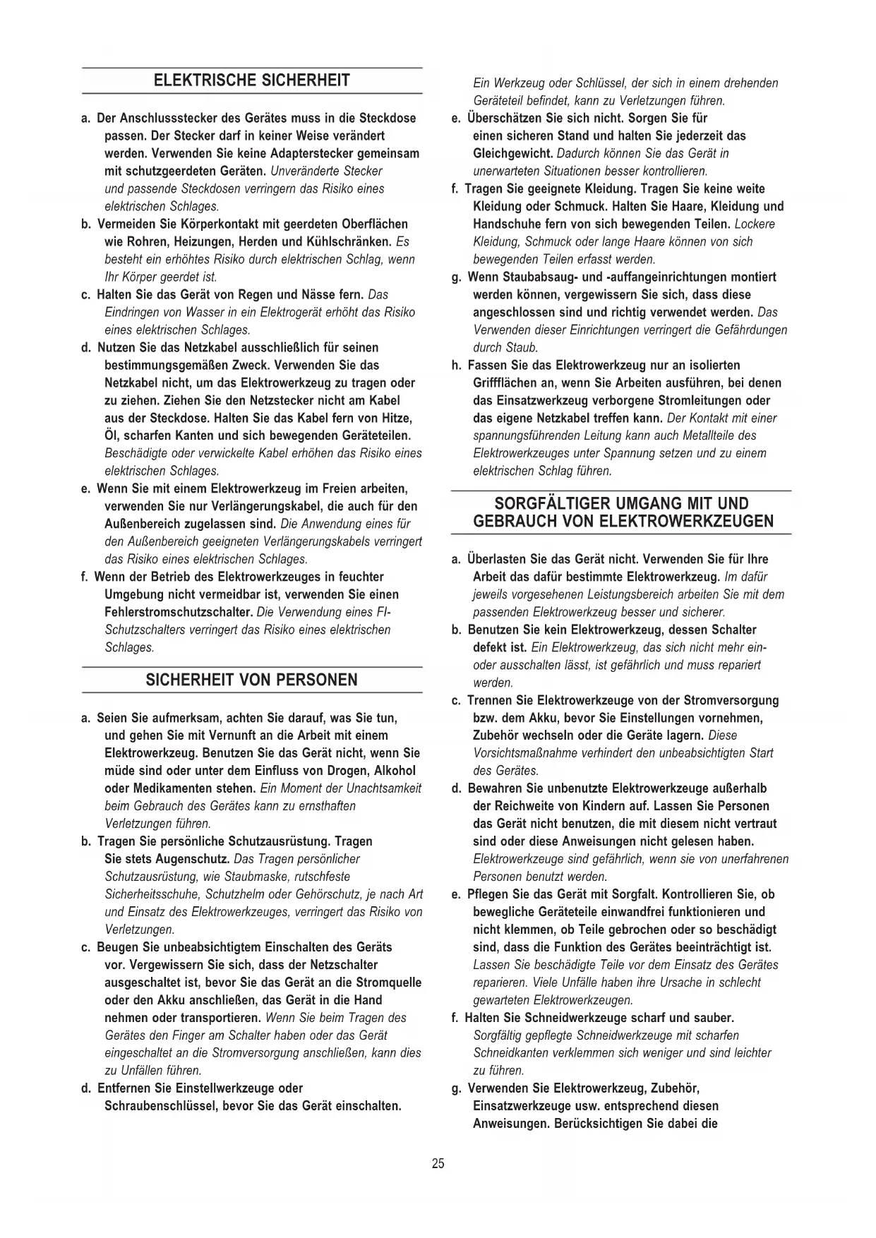 Elektrowerkzeug. Benutzen Sie das Gerät nicht, wenn Sie