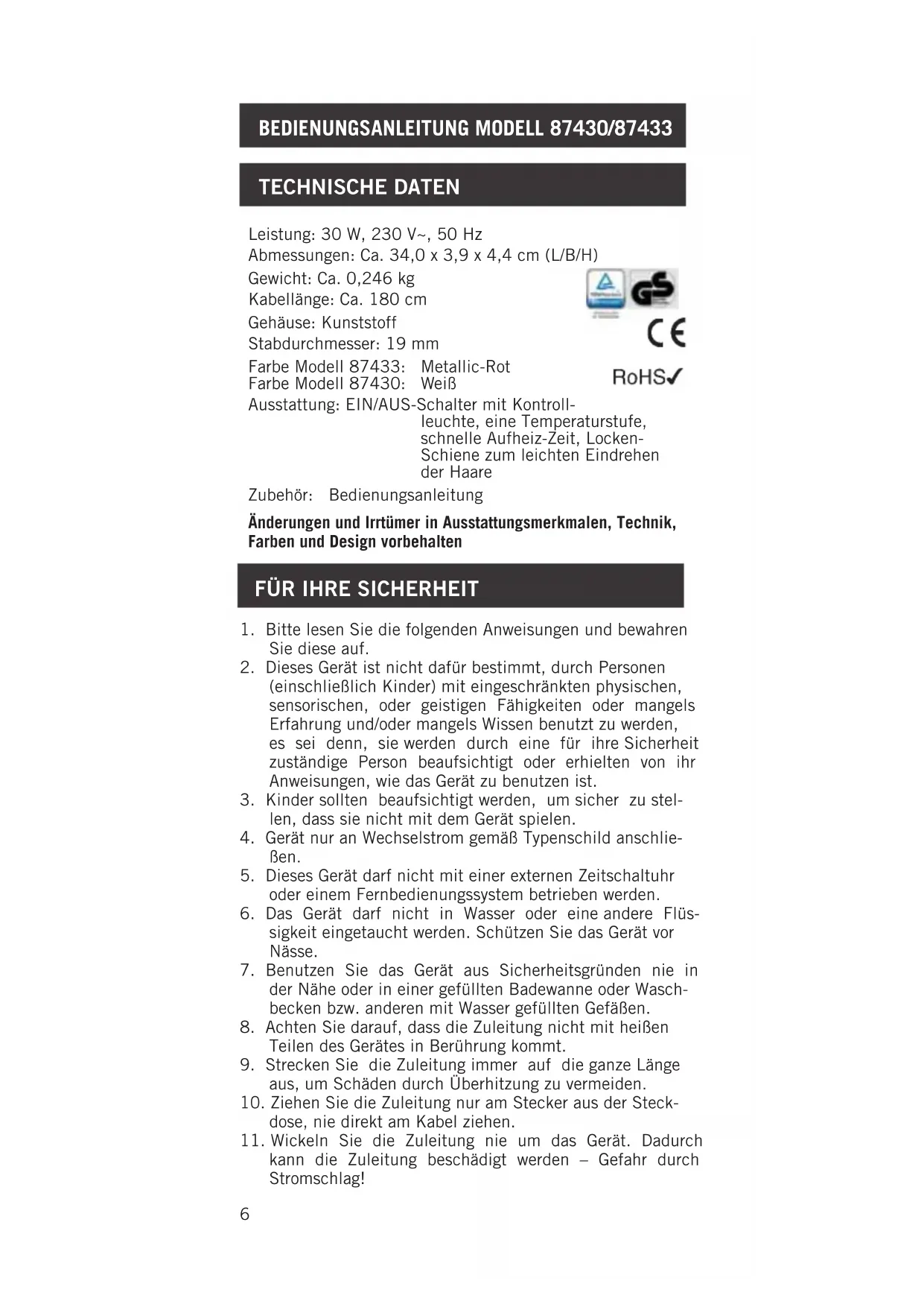 BEDIENUNGSANLEITUNG MODELL 87430/87433
