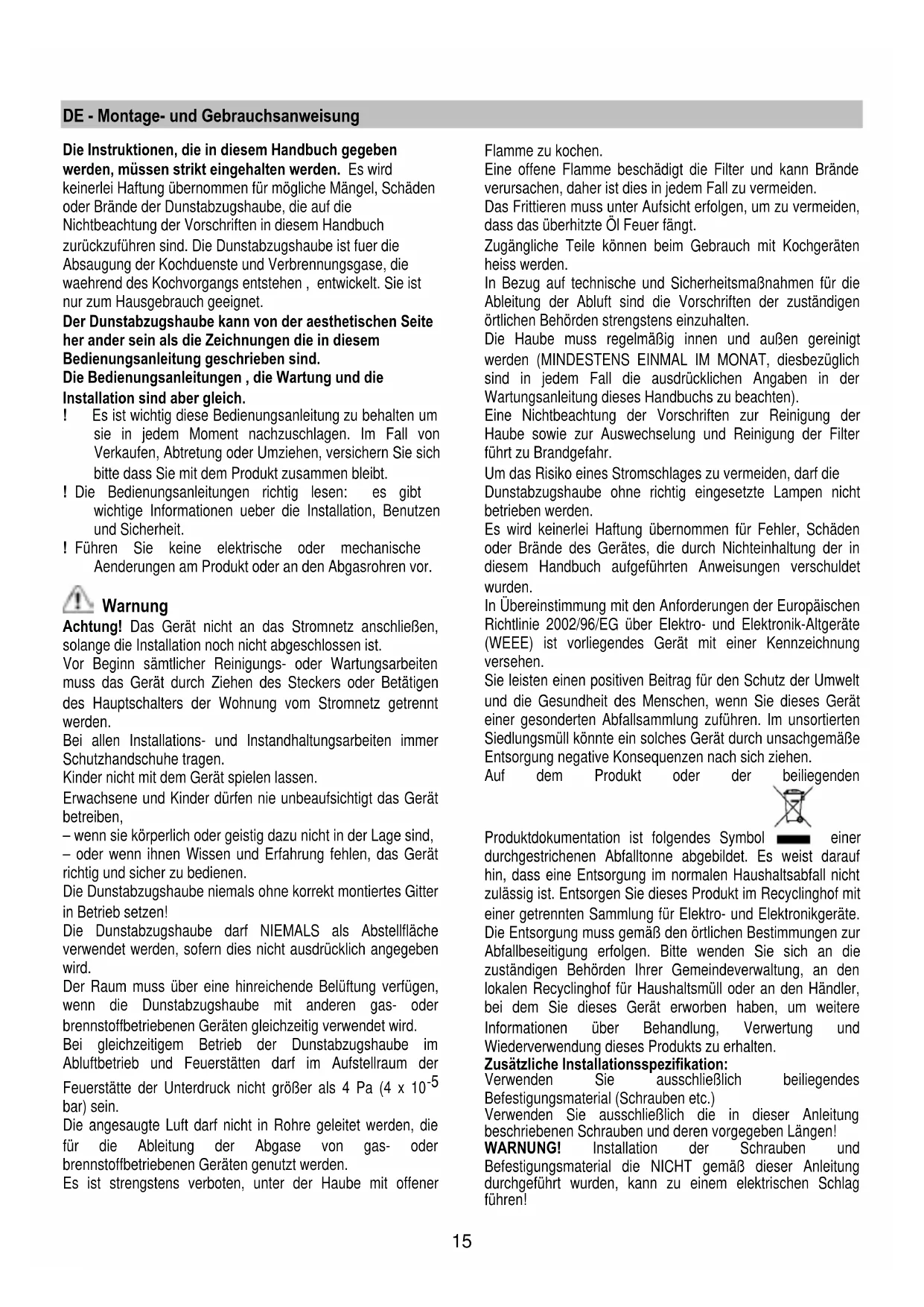 ! Führen Sie keine elektrische oder mechanische