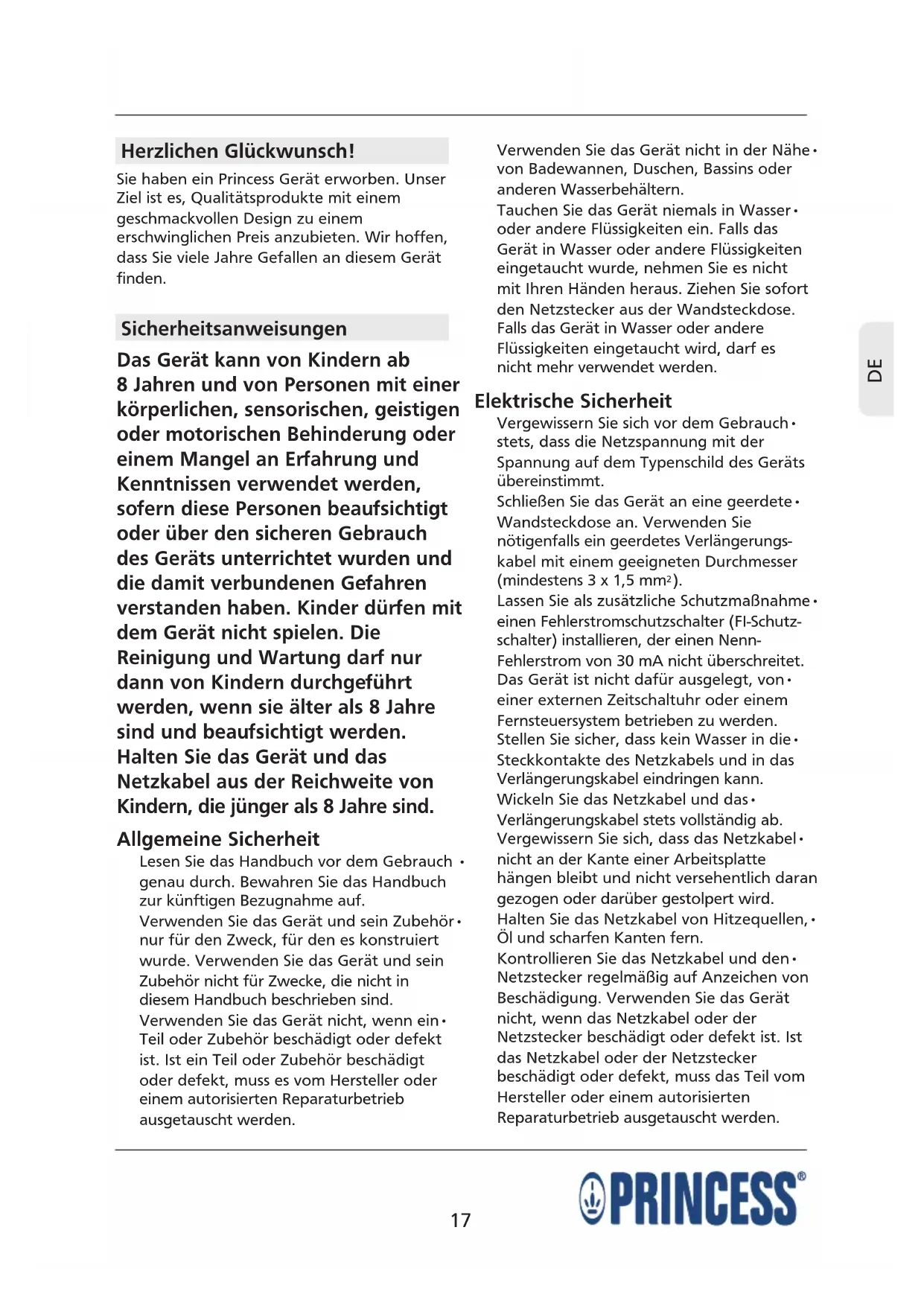 Sie haben ein Princess Gerät erworben. Unser