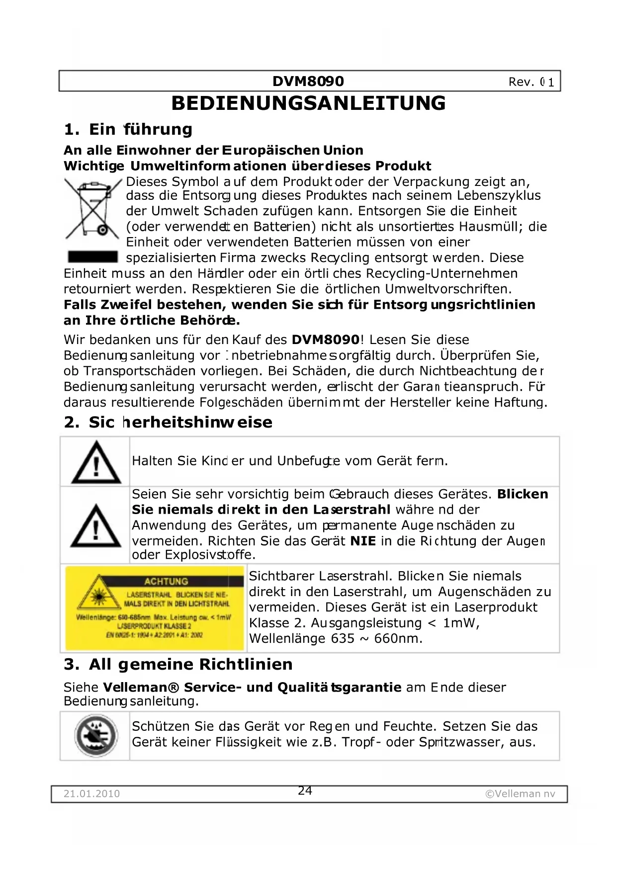 Siehe Velleman® Service- und Qualitätsgarantie am Ende dieser Bedienung sanleitung.