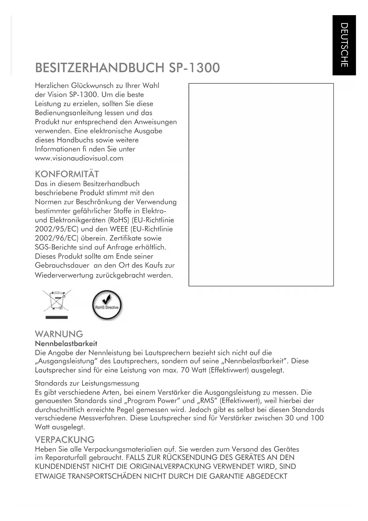 SP1300B - Lautsprecher VISION - Kostenlose Bedienungsanleitung