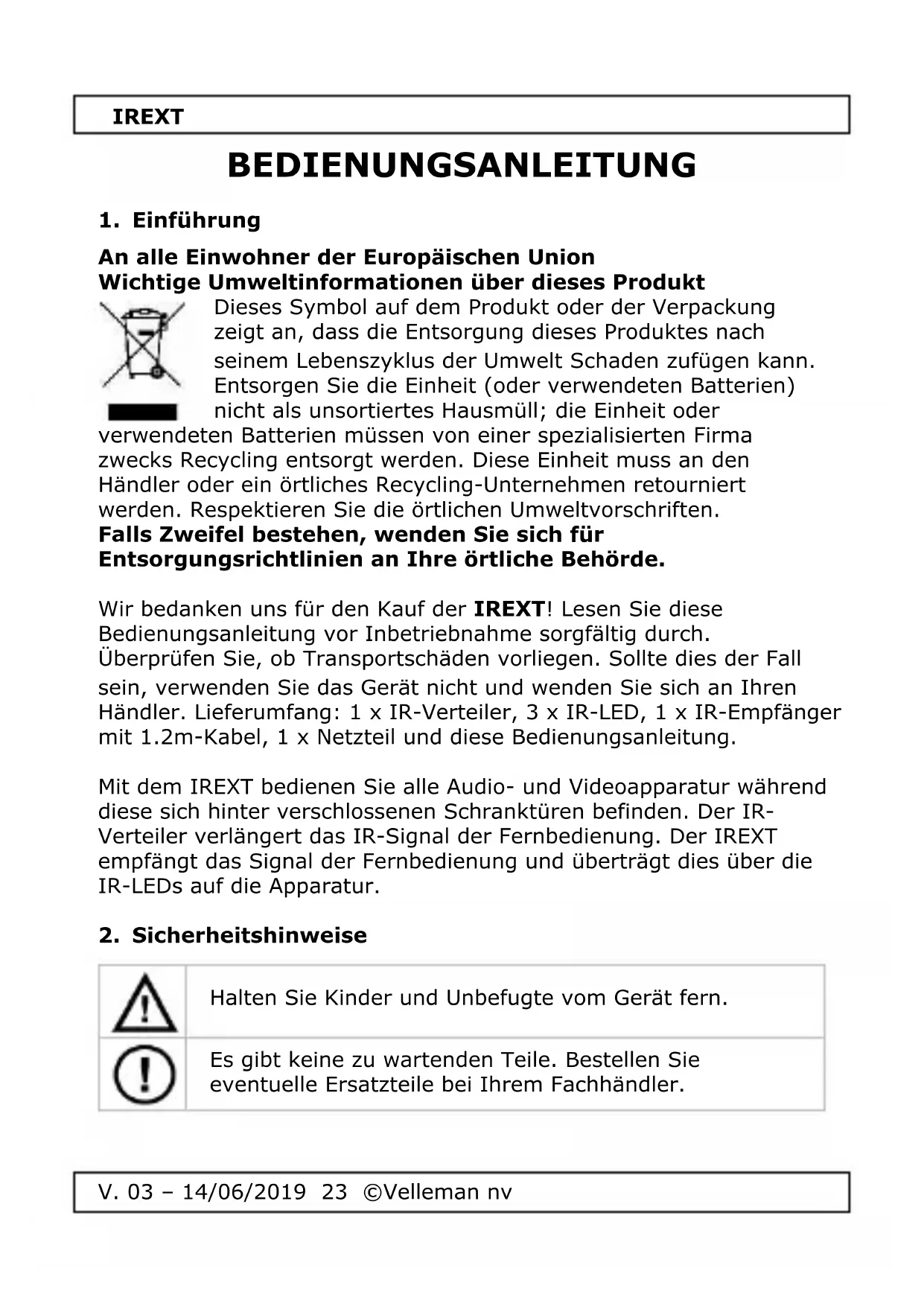 BEDIENUNGSANLEITUNG IREXT VELLEMAN