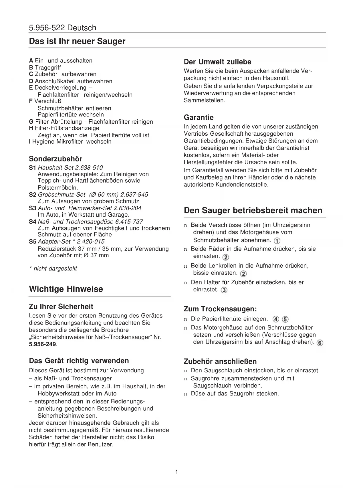 „Sicherheitshinweise für Naß-/Trockensauger“ Nr.