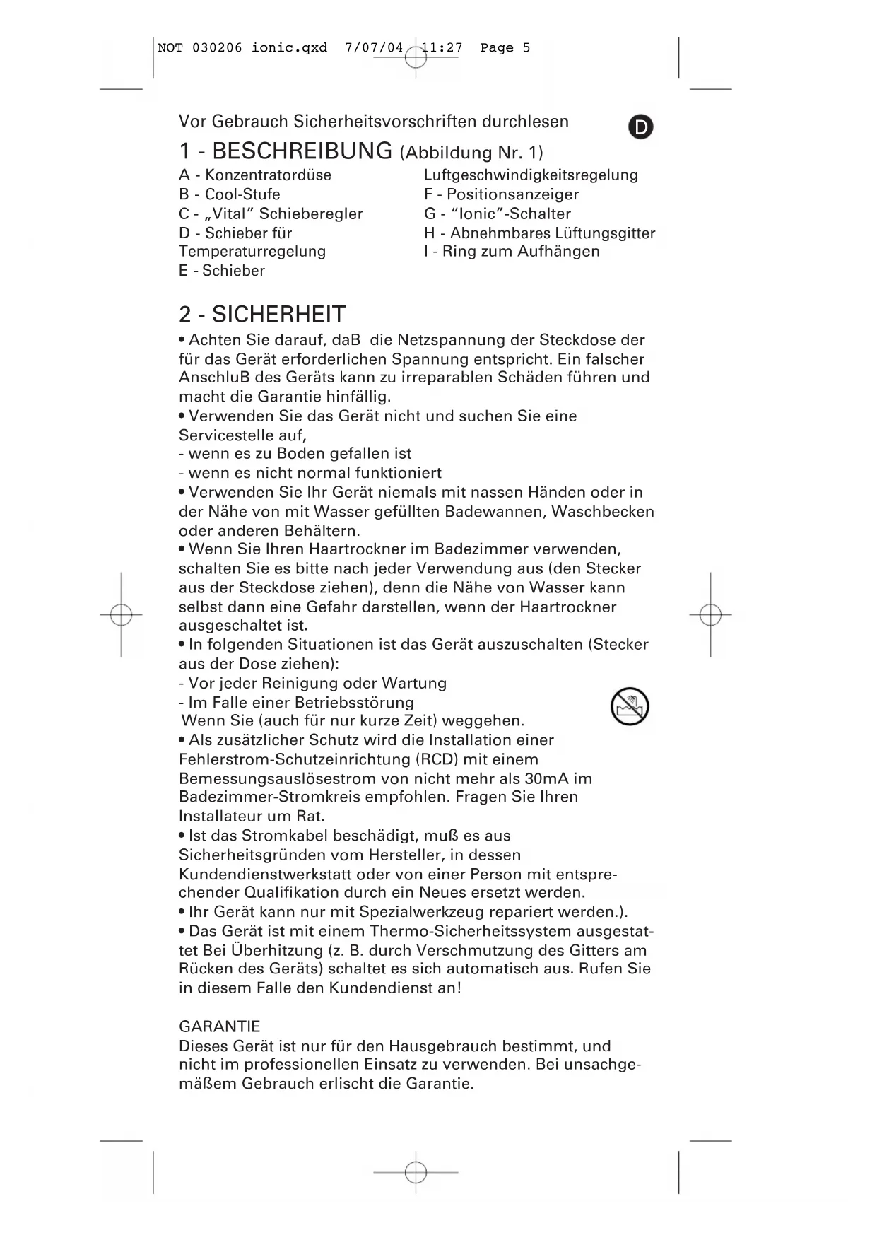 NOT 030206 ionic.qxd 7/07/04 11:26 Page 3NOT 030206 ionic.qxd 7/07/04 11:27 Page 42 - SICHERHEIT
