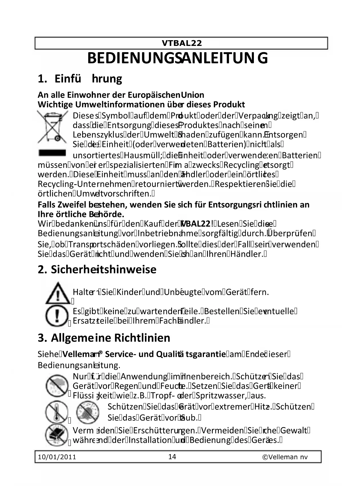 Finden Sie kostenlos die Bedienungsanleitung des Geräts VTBAL22 VELLEMAN als PDF.