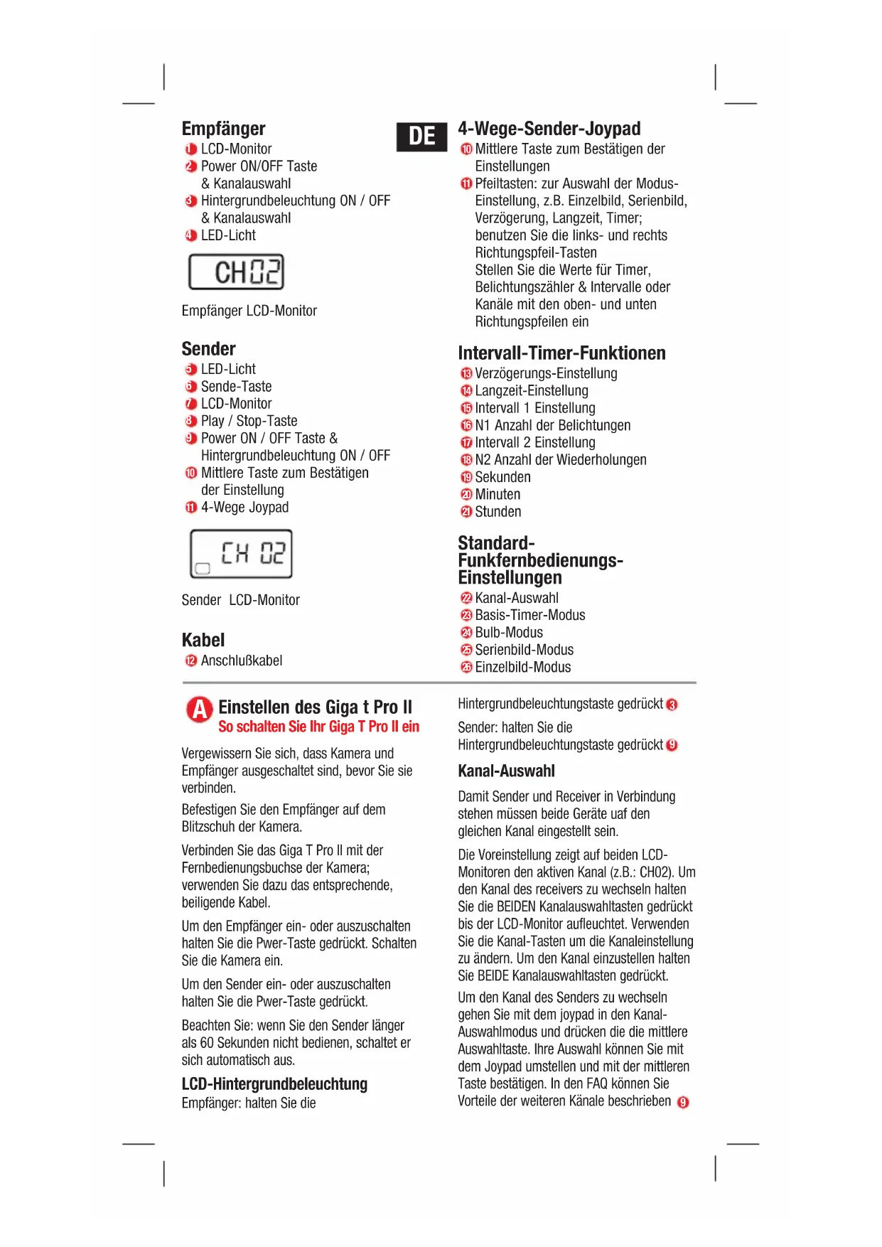 BEDIENUNGSANLEITUNG Giga T Pro II Hähnel