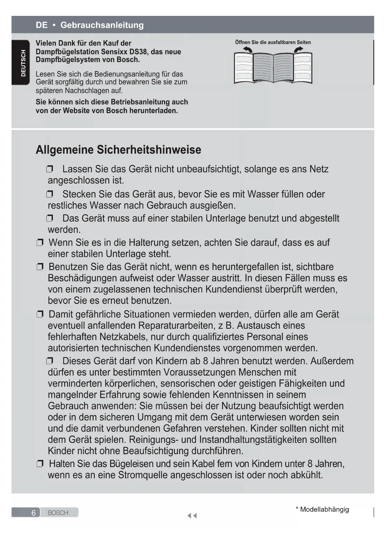 6 B O S C HDEUTSCH * Modellabhängig