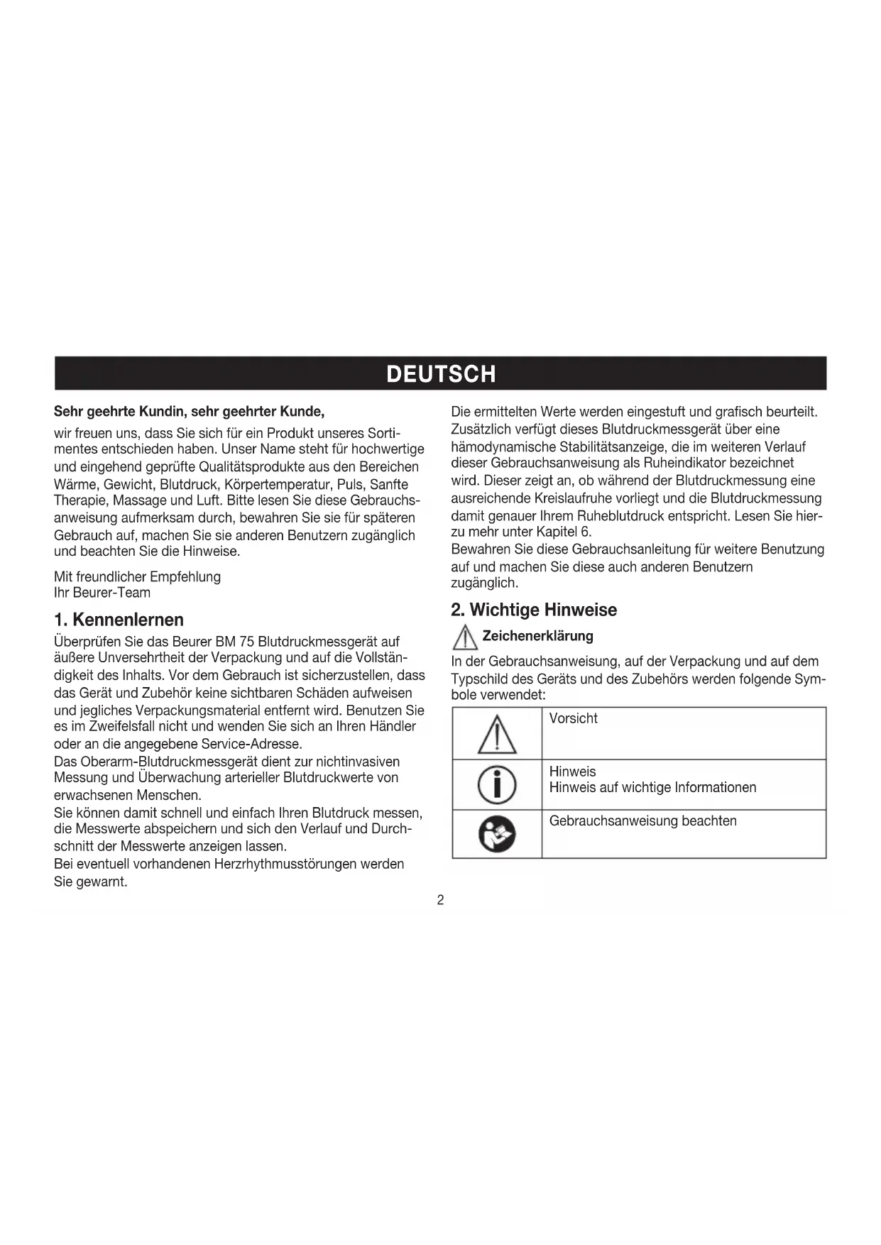 BEDIENUNGSANLEITUNG BM 75 BEURER