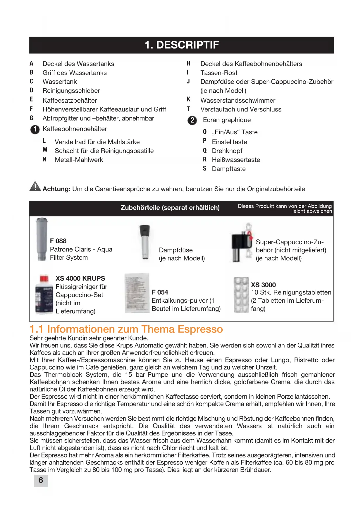 DE KR_ESPRESSO_EA83_EO_EA83_NEW CHARTE 30/05/13 11:27 Page5Achtung: Um die Garantieansprüche zu wahren, benutzen Sie nur die Originalzubehörteile