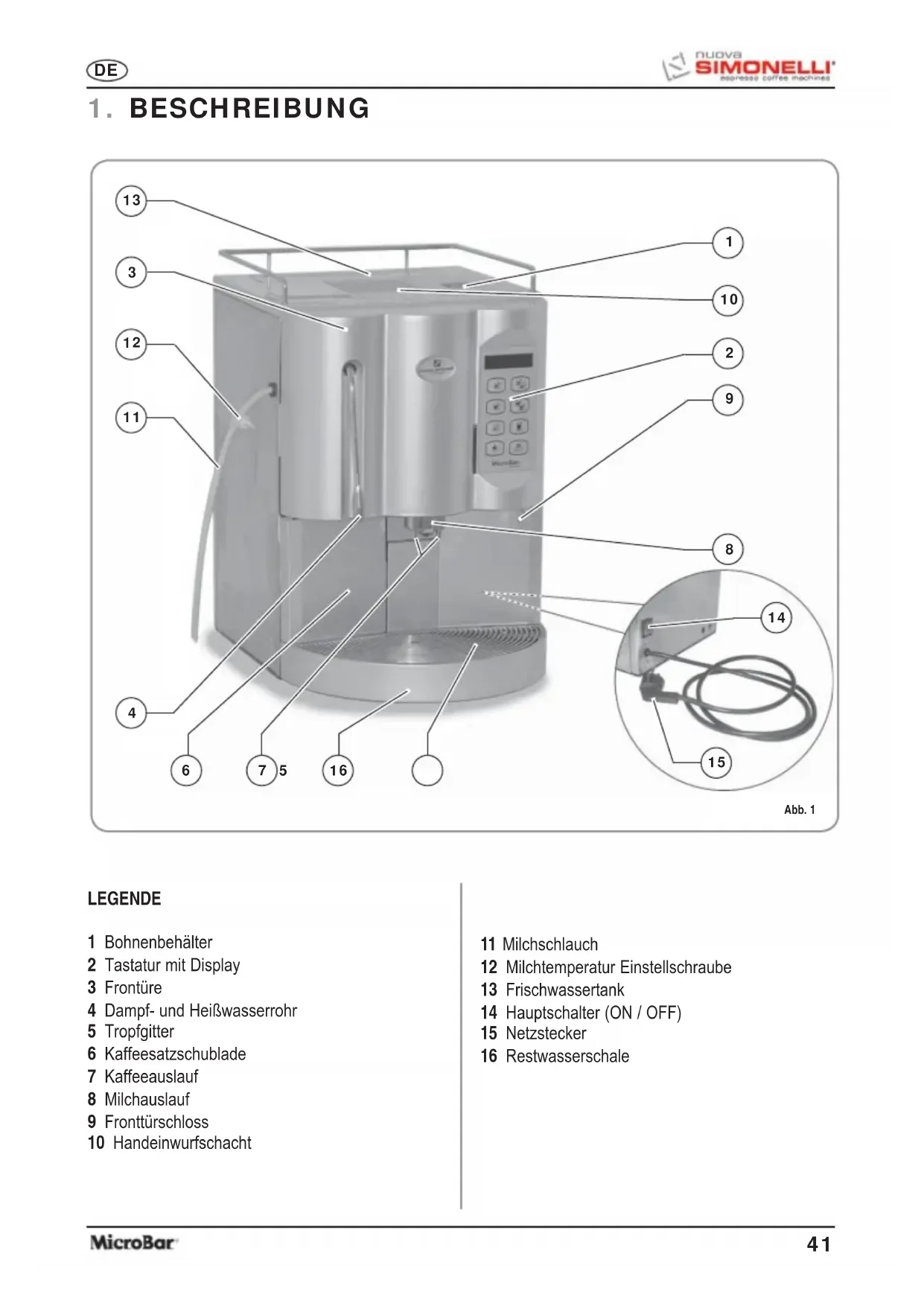 Laden Sie die Anleitung für Ihr Kaffeemaschine kostenlos im PDF-Format! Finden Sie Ihr Handbuch Microbar AD - NUOVA SIMONELLI und nehmen Sie Ihr elektronisches Gerät wieder in die Hand. Auf dieser Seite sind alle Dokumente veröffentlicht, die für die Verwendung Ihres Geräts notwendig sind. Microbar AD von der Marke NUOVA SIMONELLI.