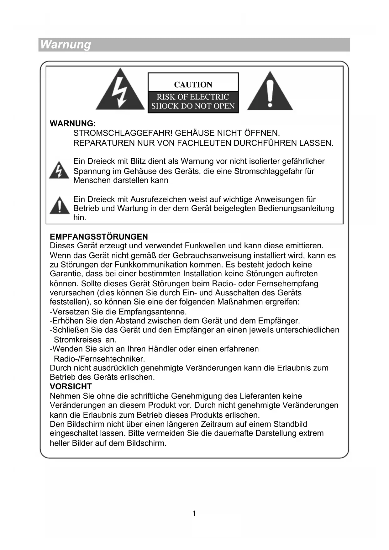STROMSCHLAGGGEFAHR! GEHÄUSE NICT TÖFFNEN.