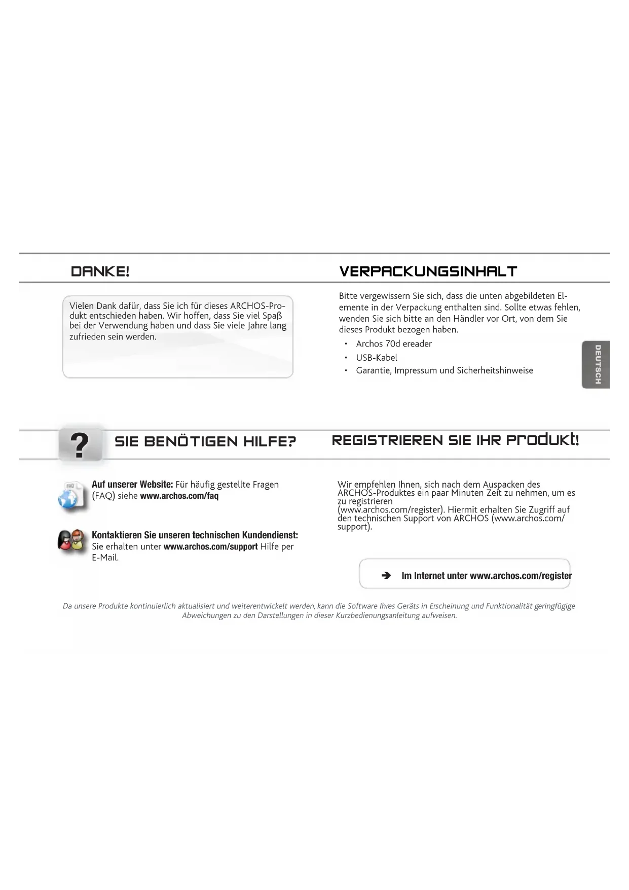 (www.archos.com/register). Hiermit erhalten Sie Zugriff auf