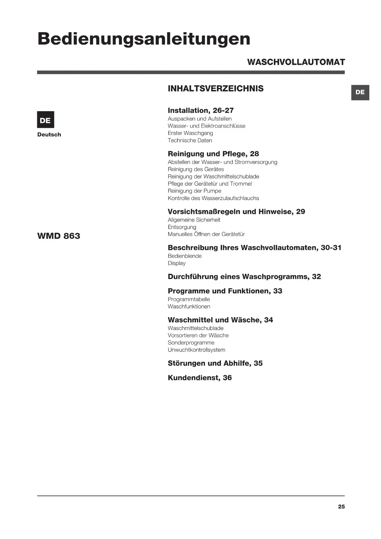 BEDIENUNGSANLEITUNG WMD 863 HOTPOINT