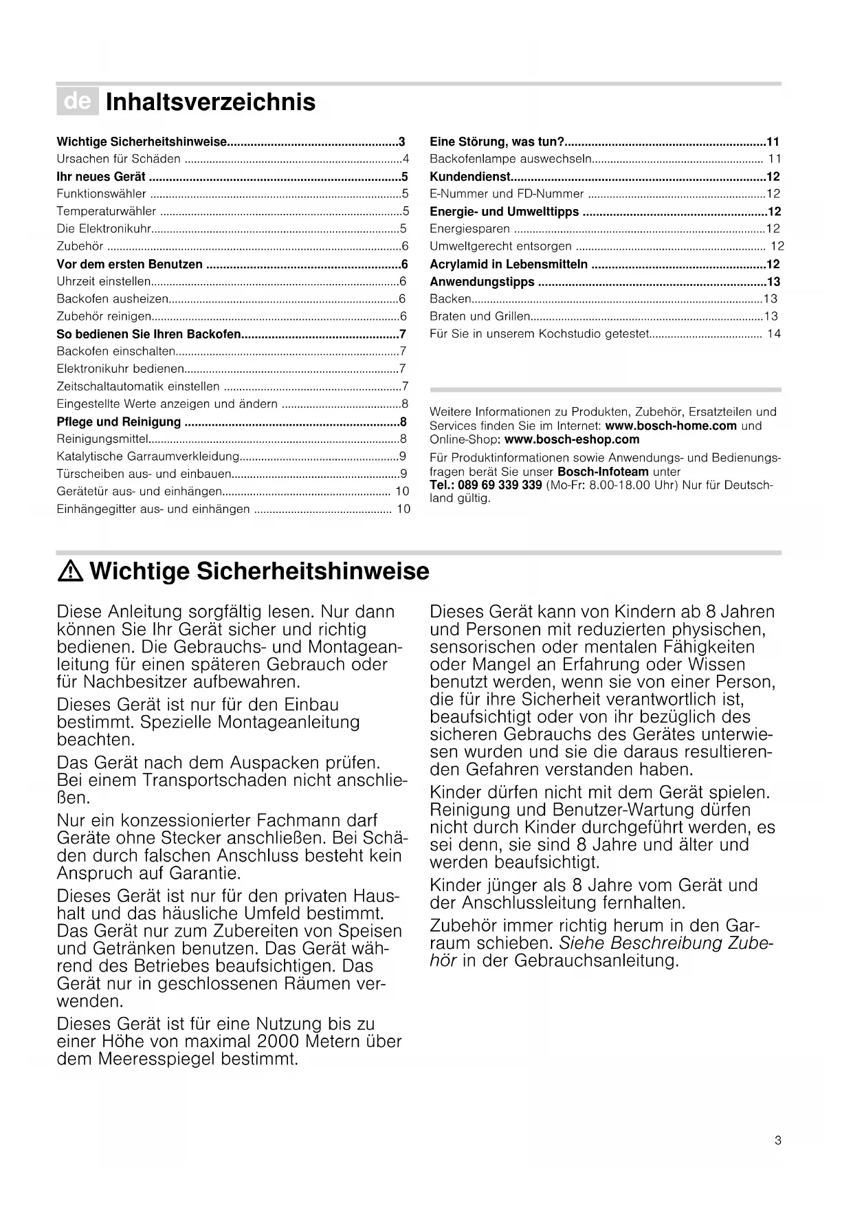 Ø Inhaltsverzeichnis [de]Gebrauchsanleitung Wichtige Sicherheitshinweise3