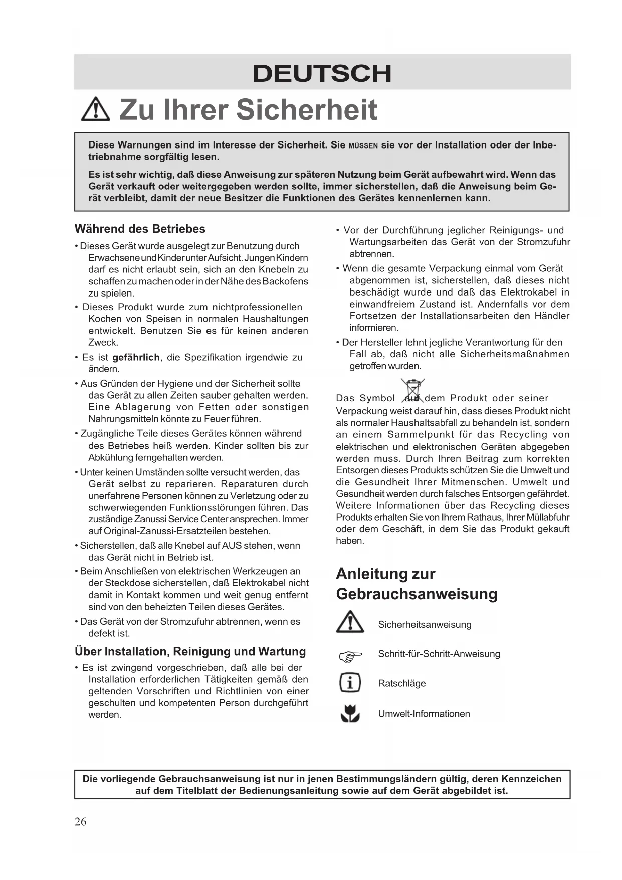 Die vorliegende Gebrauchsanweisung ist nur in jenen Bestimmungsländern gültig, deren Kennzeichen
