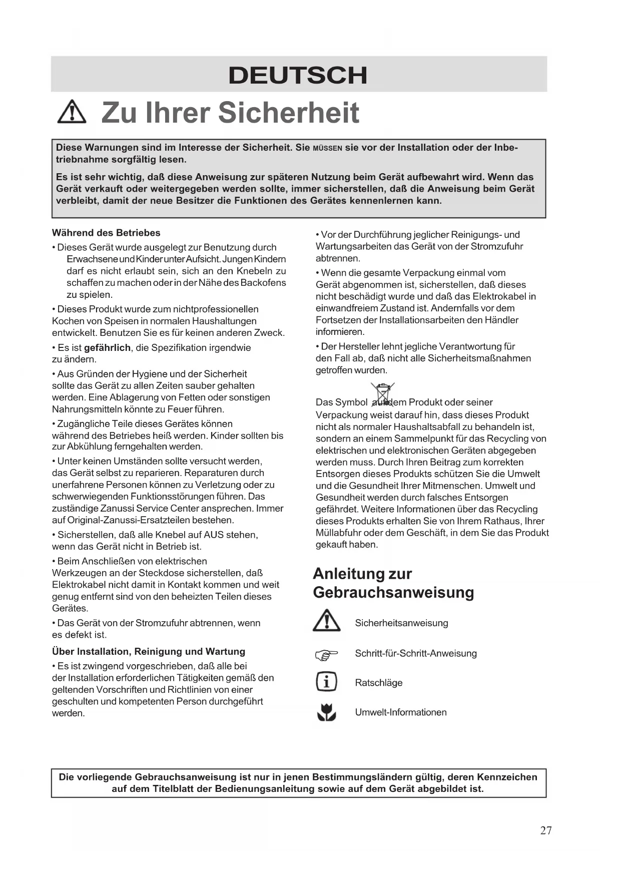 Die vorliegende Gebrauchsanweisung ist nur in jenen Bestimmungsländern gültig, deren Kennzeichen