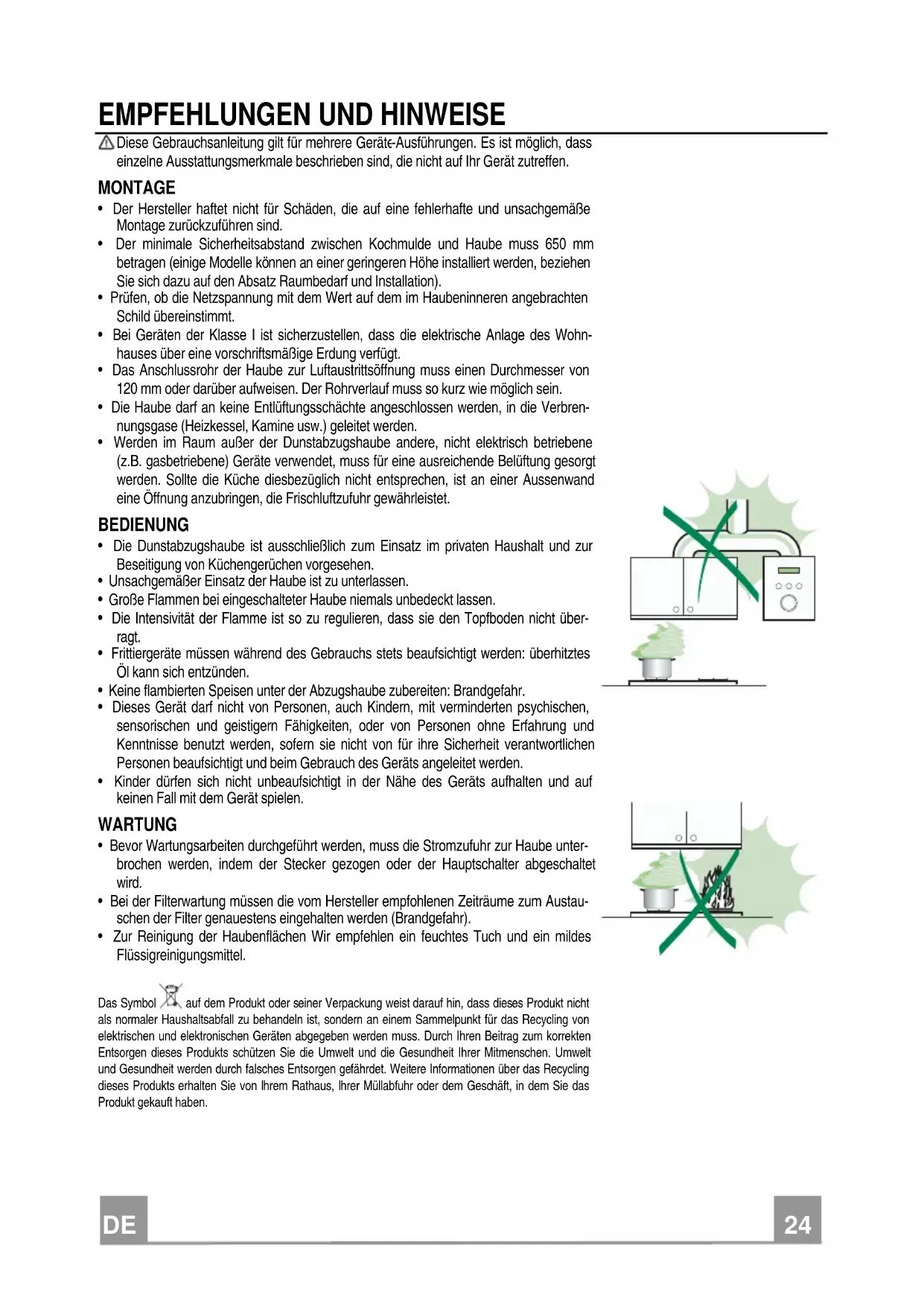 • Die Dunstabzugshaube ist ausschließlich zum Einsatz im privaten Haushalt und zur