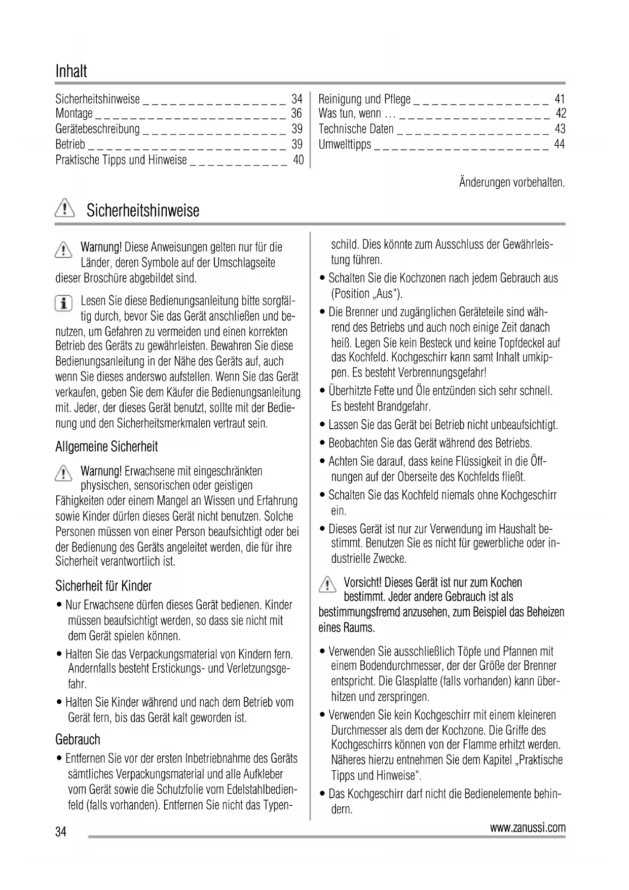Sicherheitshinweise _ _ _ _ _ _ _ _ _ _ _ _ _ _ _ _ 34