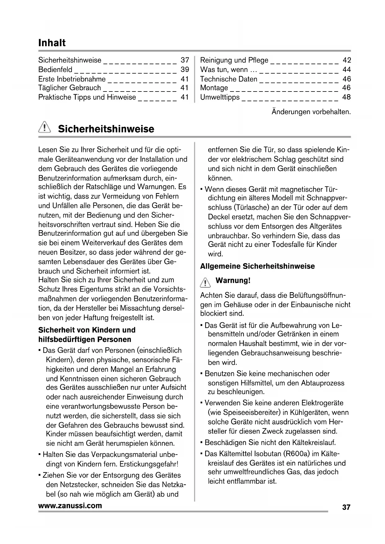 Sicherheitshinweise _ _ _ _ _ _ _ _ _ _ _ _ _ 37