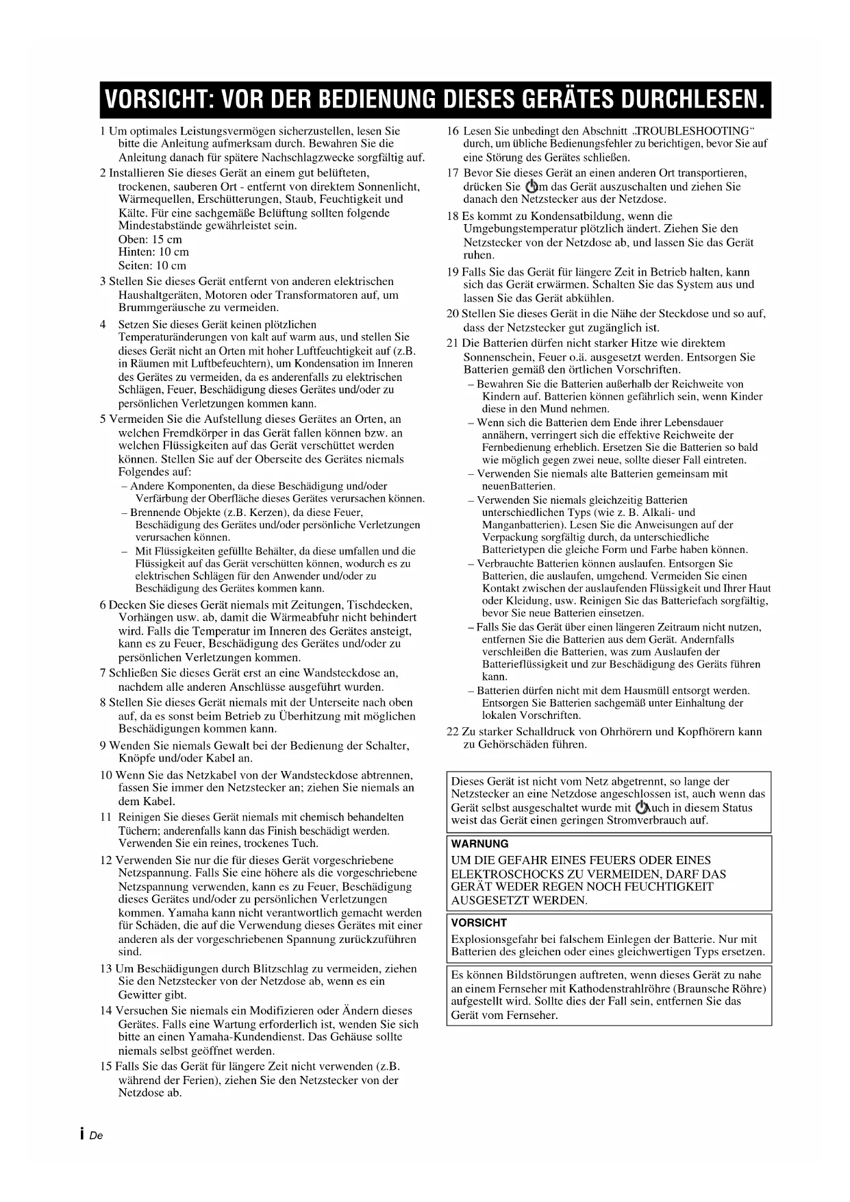 • Yamaha übernimmt keinerlei Haftung für auftretende Schäden