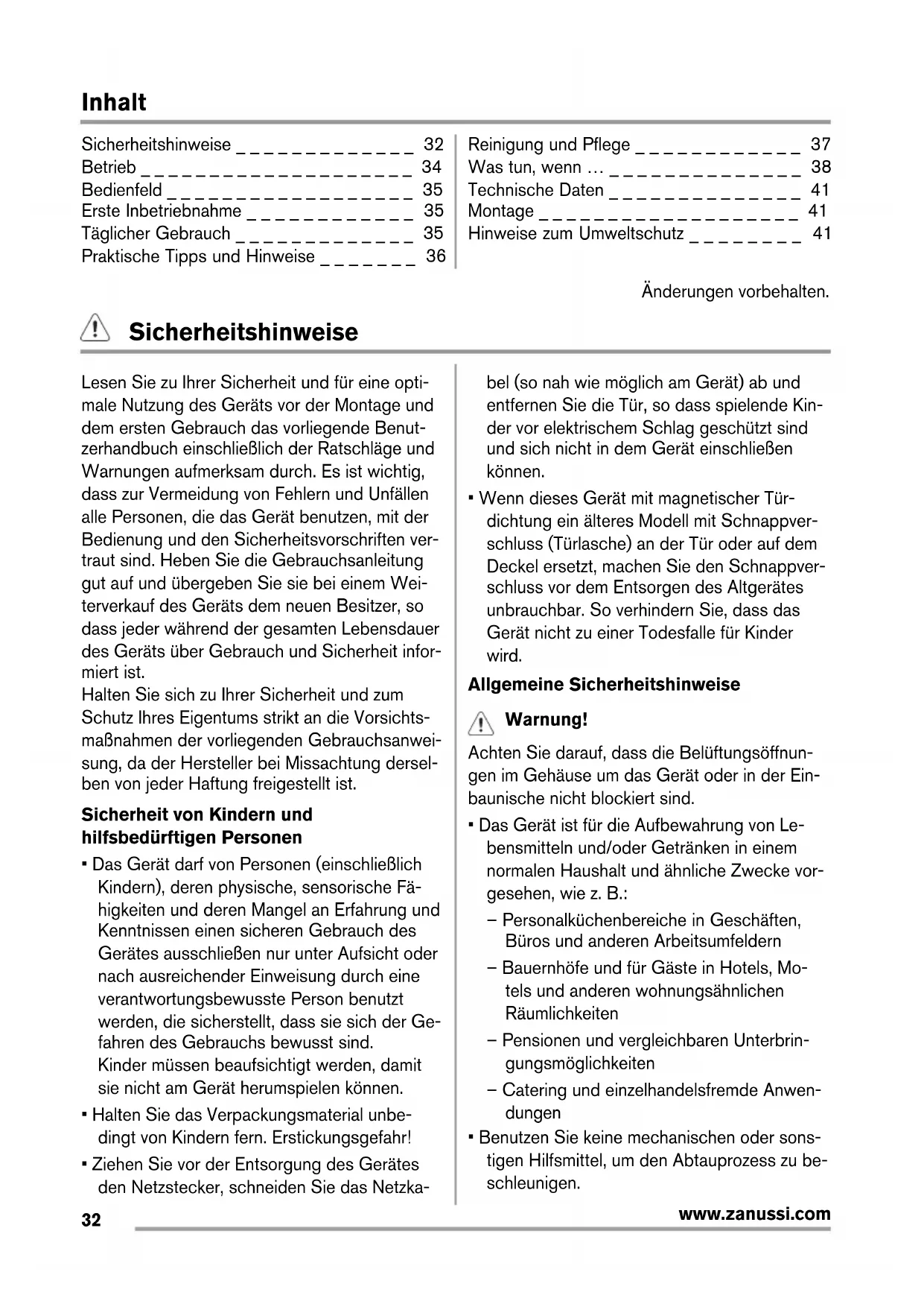 Sicherheitshinweise _ _ _ _ _ _ _ _ _ _ _ _ _ 32